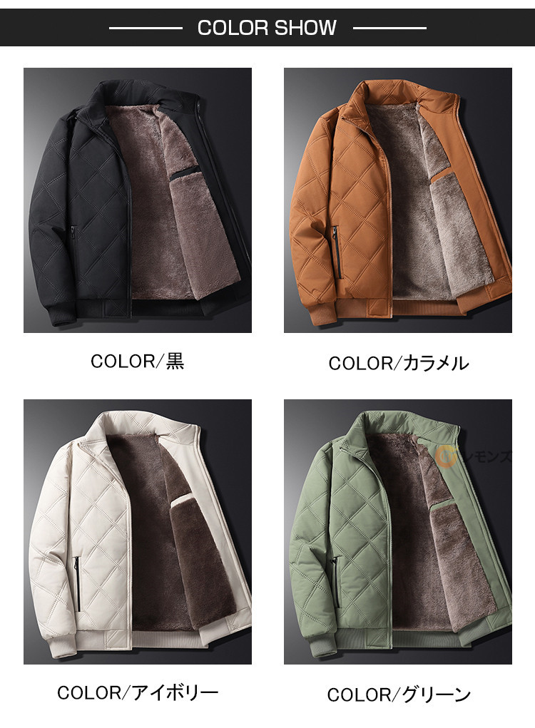 商品名 ボアブルゾン メンズ 中綿ジャケット 裏起毛 ジャケット キルティング ジャケット ビジネス アウター 厚手ジャケット 秋冬 防寒着 あったか 裏ボアジャケット もこもこ ジャンパー スタンドカラー ブルゾン 大きいサイズ 冬物 冬服 中綿入り