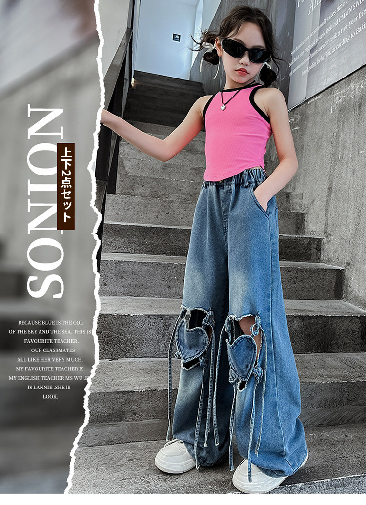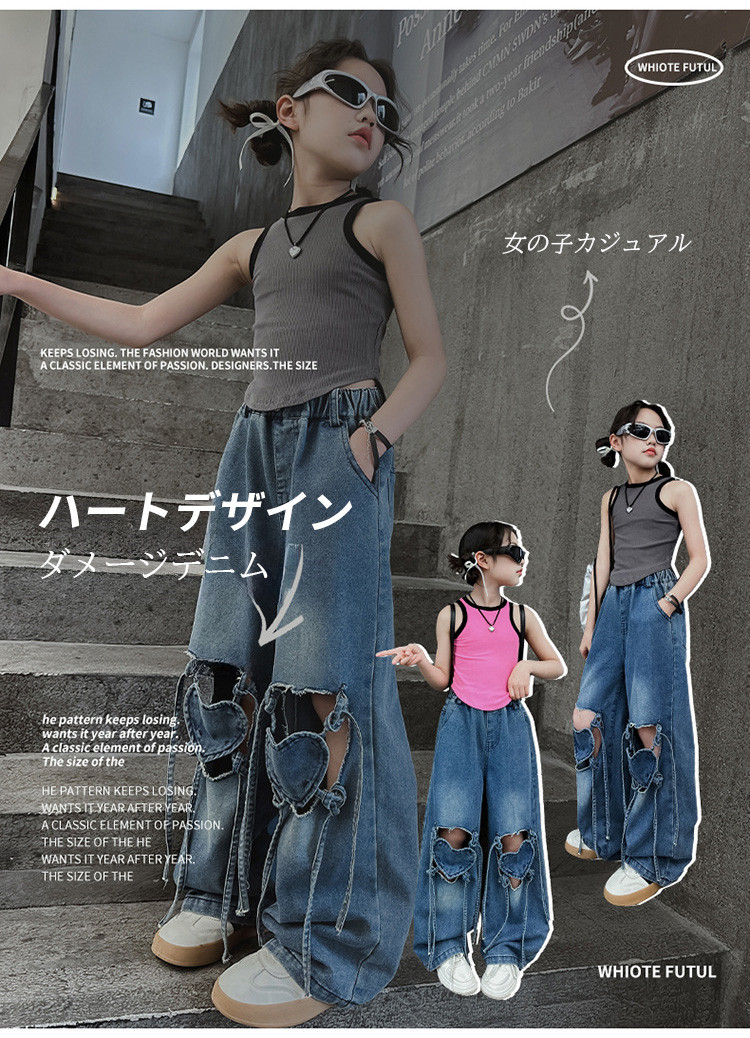 デニム ダメージパンツ ハート タンク