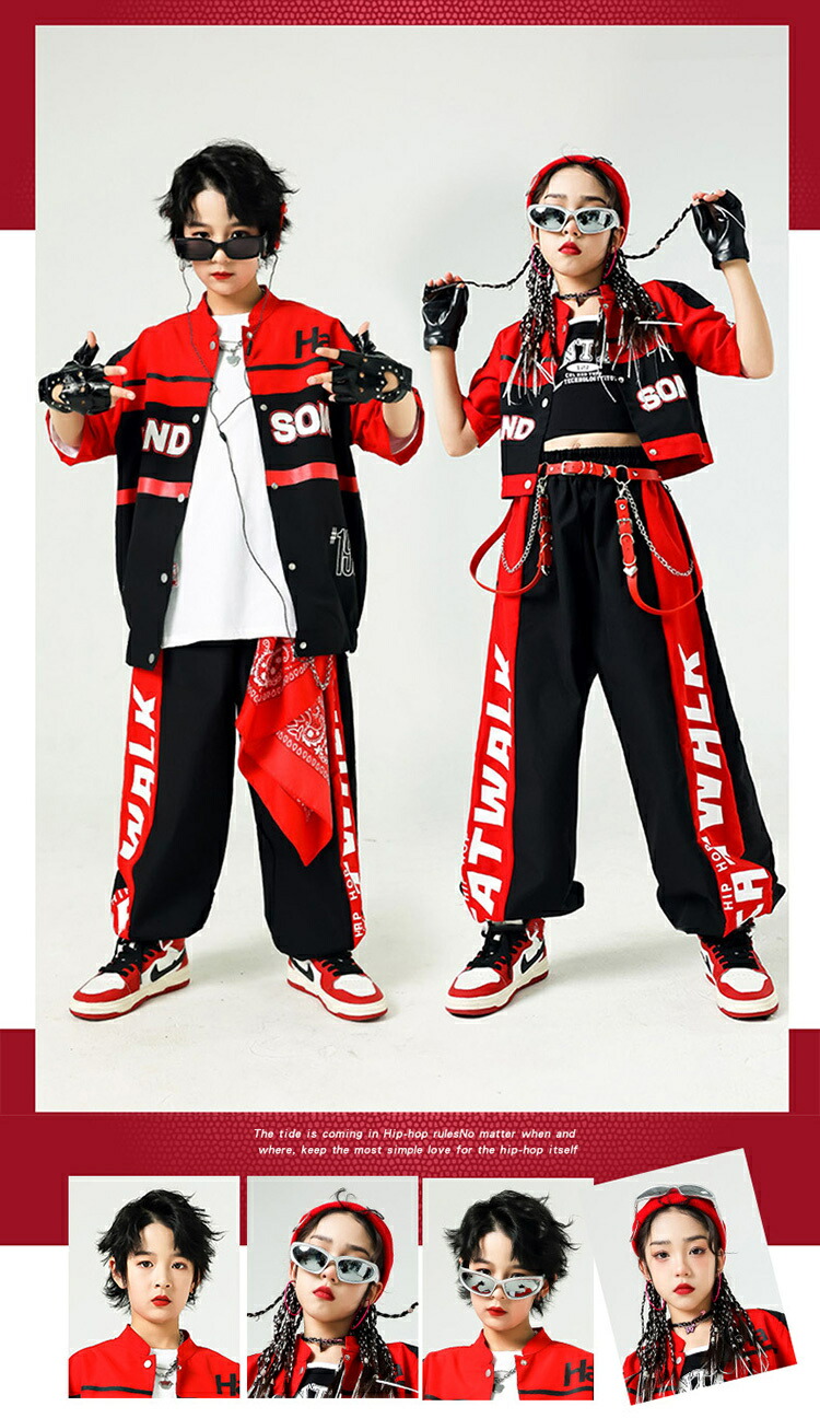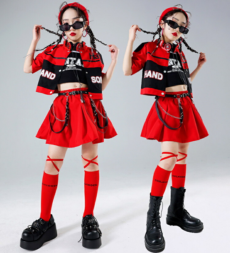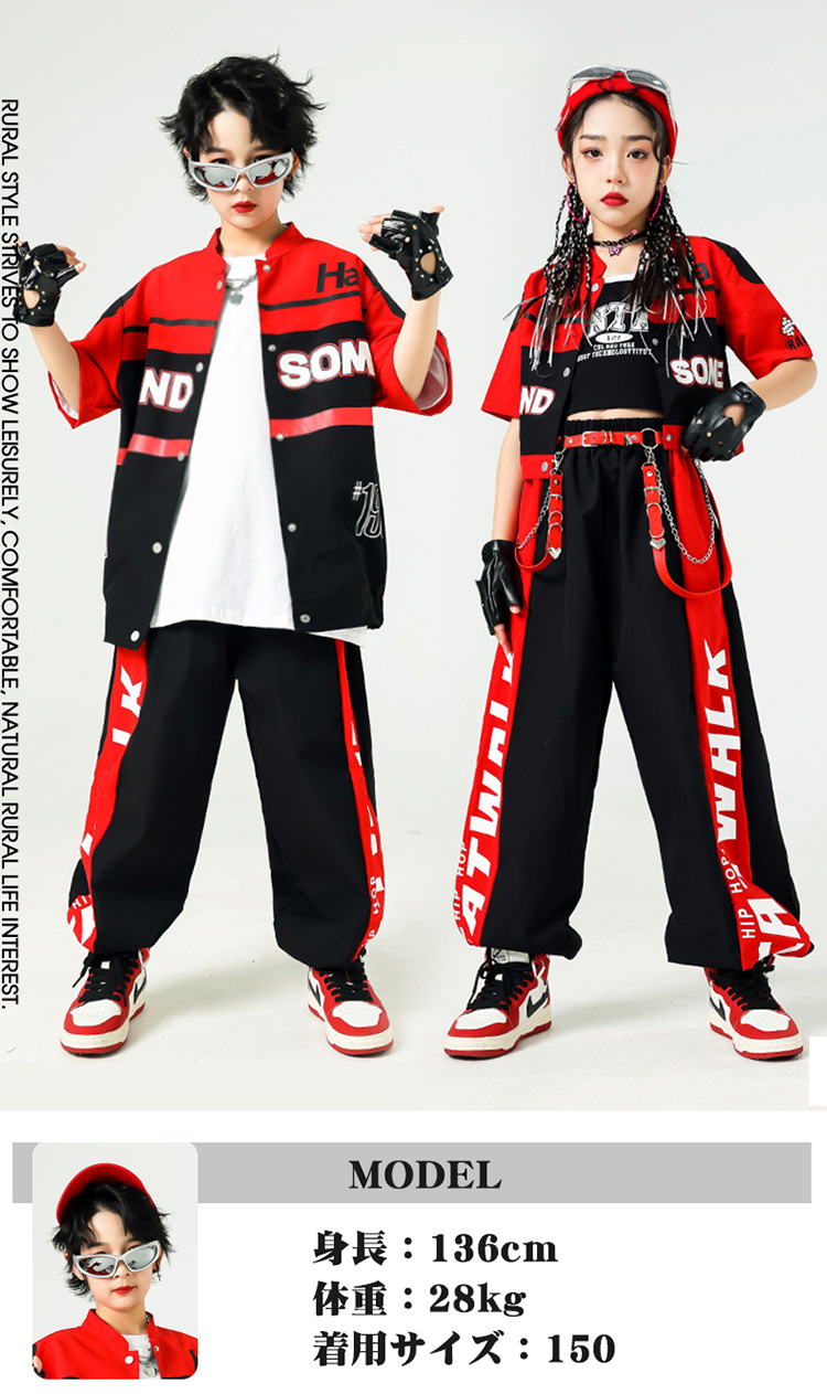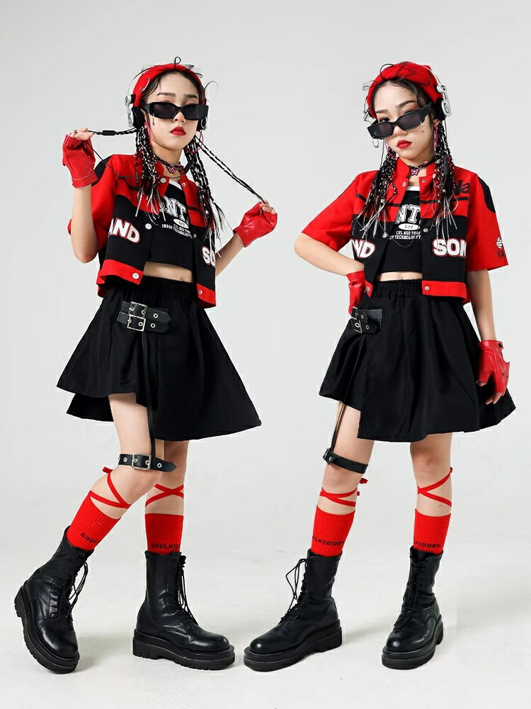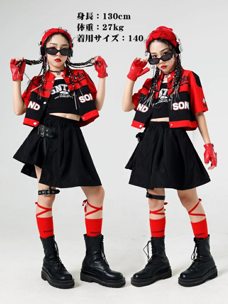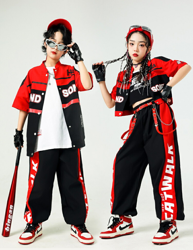 キッズダンス 衣装 黒 赤 レーシング