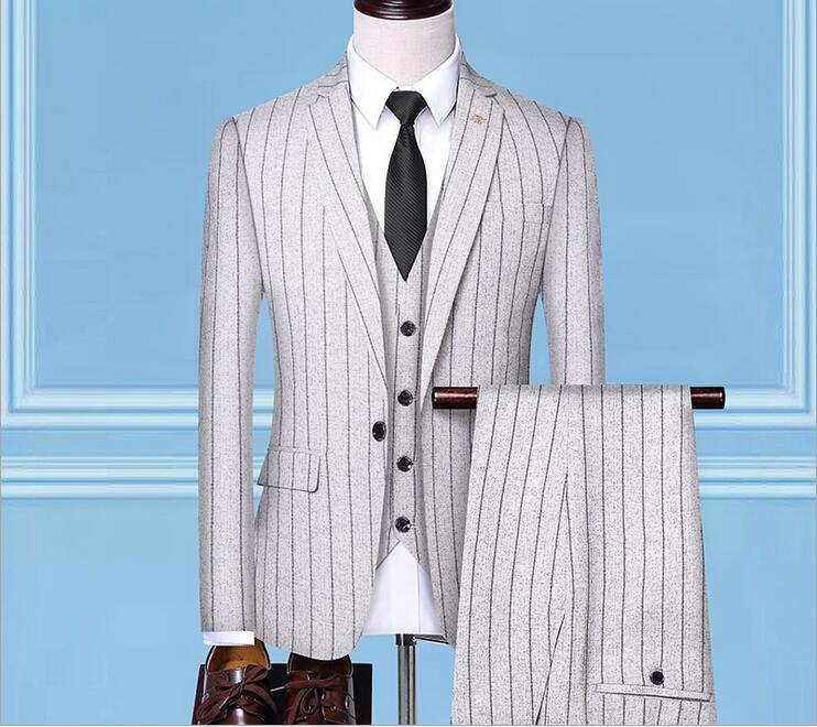 メンズスーツ 3ピーススーツ スリムストライプスーツ 紳士用 OL 大きいサイズ タキシードジャケット+ベスト+パンツ 一つボダンスーツ 4色M~4XL