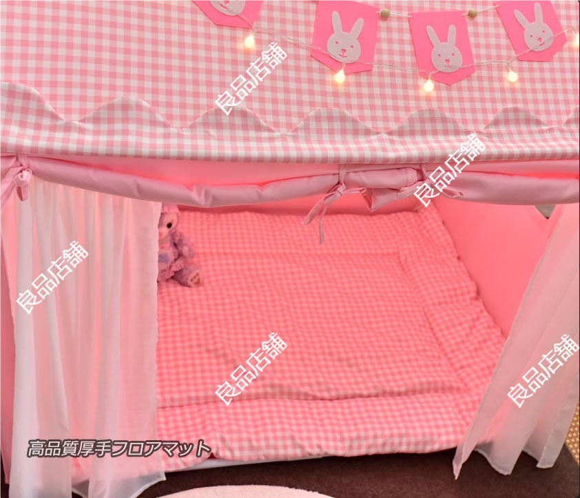 内容: 小屋+白いレースカーテン付き/厚手フロアマット+旗(LEDカラーライトはや他の人形など飾りものは付属しておりません)