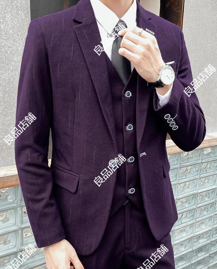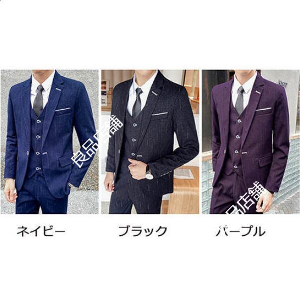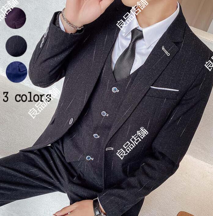 メンズファッション 3色 メンズスーツ 上品 縞々柄 ストライプ 3点セット 3ピーススーツ ビジネス 落ち着いたスーツ M~5XL 1つボタン カジュアル リクルートスーツ 冠婚葬祭