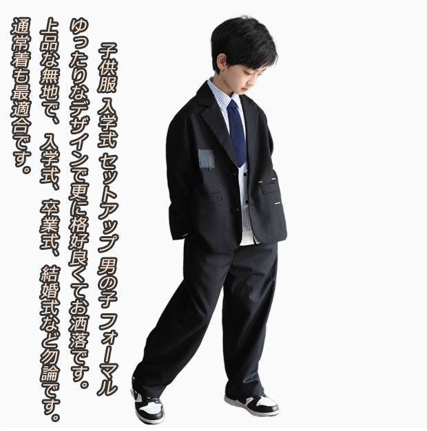 子供服 入学式 セットアップ 男の子 フォーマル 定番な一式揃っているため、入学式、卒業式、結婚式など勿論です。通常着も最適合です。 定番セットで紳士な男の子の雰囲気を手軽に演出