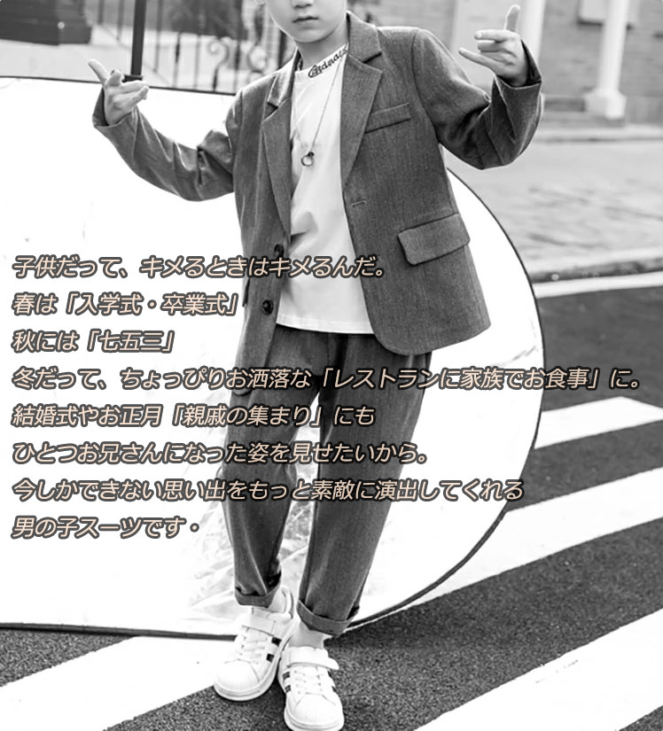 子供服 入学式 セットアップ 男の子 フォーマル 定番な一式揃っているため、入学式、卒業式、結婚式など勿論です。通常着も最適合です。 定番セットで紳士な男の子の雰囲気を手軽に演出