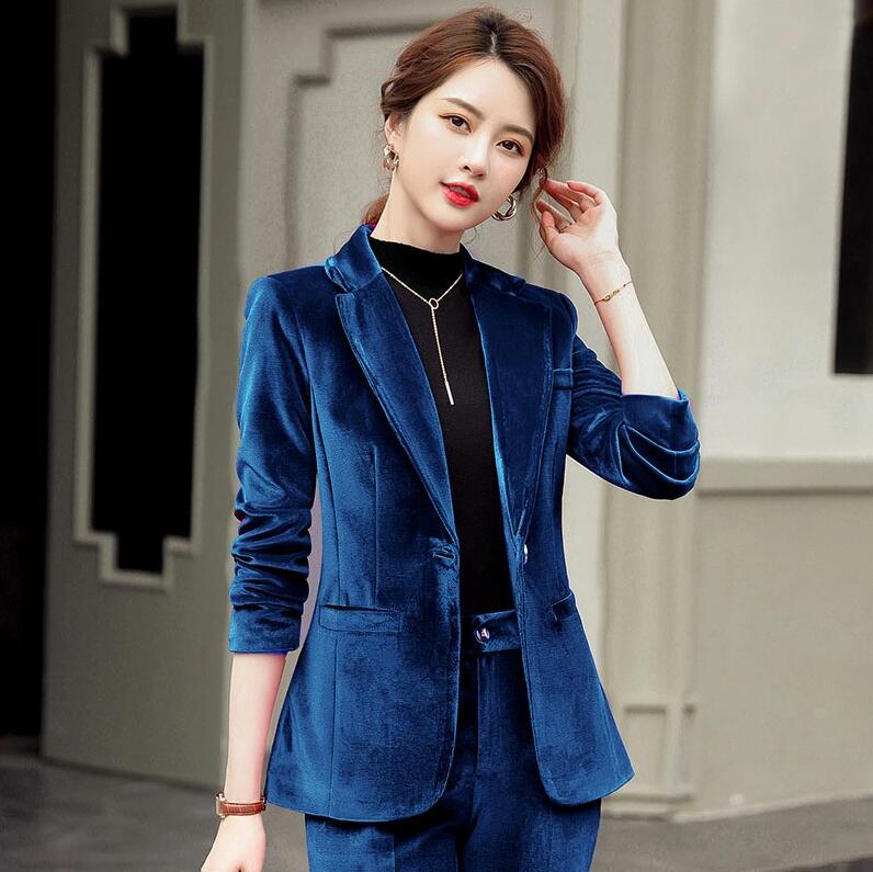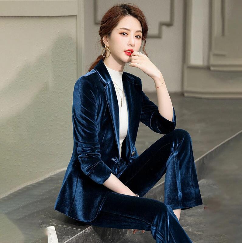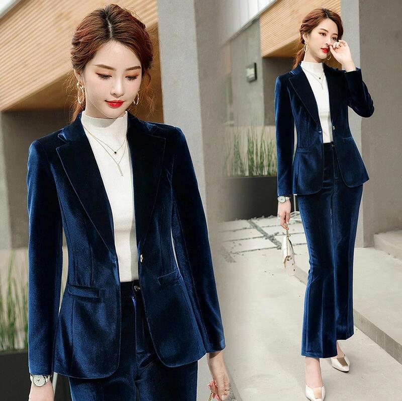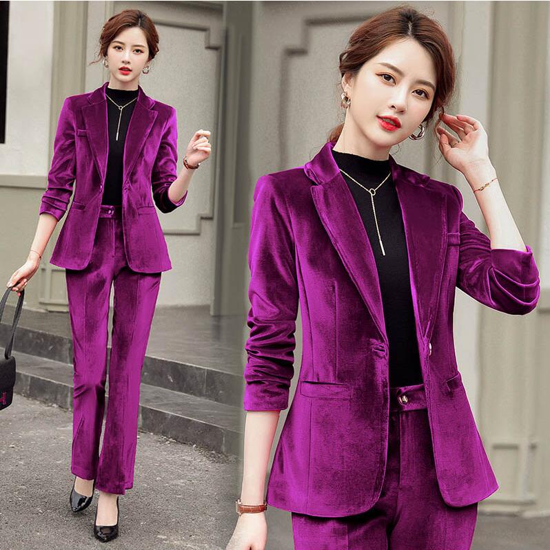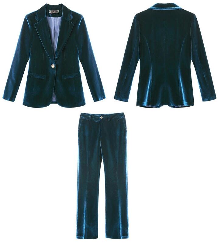 ベロア ベルベット レディーススーツ 2点セット 上下セット 一つボタンスーツ セレモニーフォーマル カジュアル パーティー スーツ ジャケット+パンツ S M L LL 3L 4L