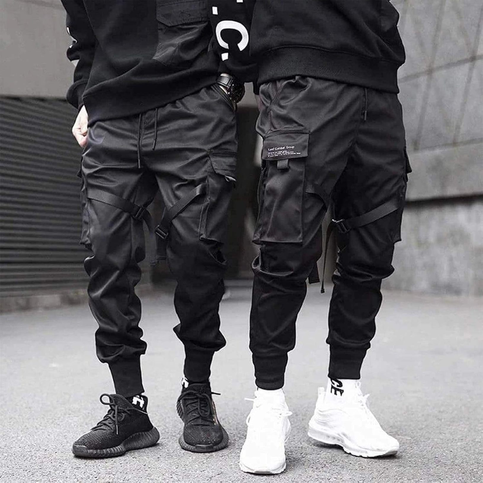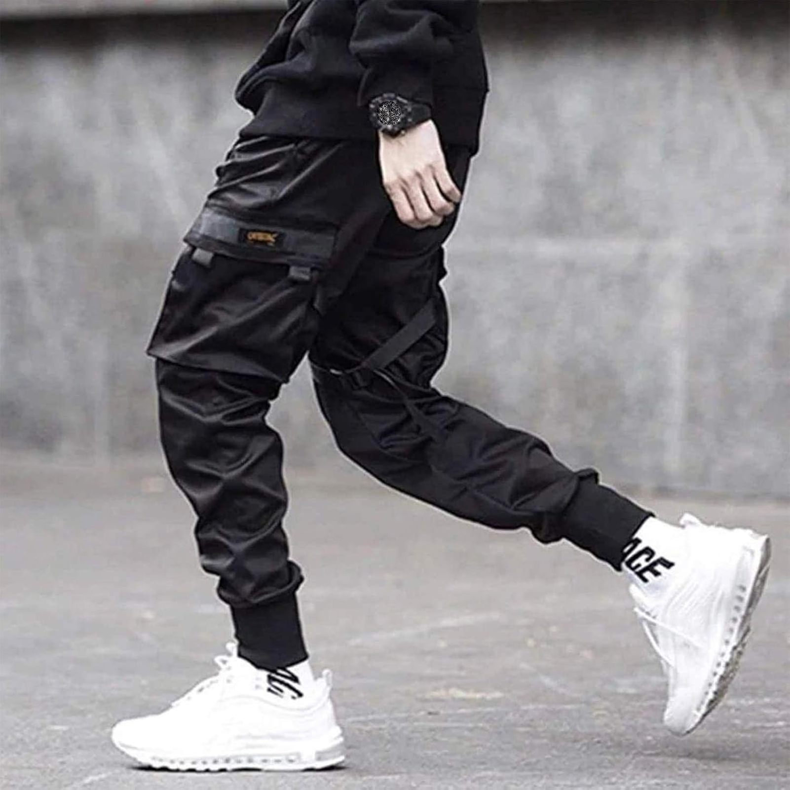 サイドに実用的なポケットが付いたアイスシルク製のメンズカーゴパンツ!調整可能なサイズ展開で幅広い体型に対応!