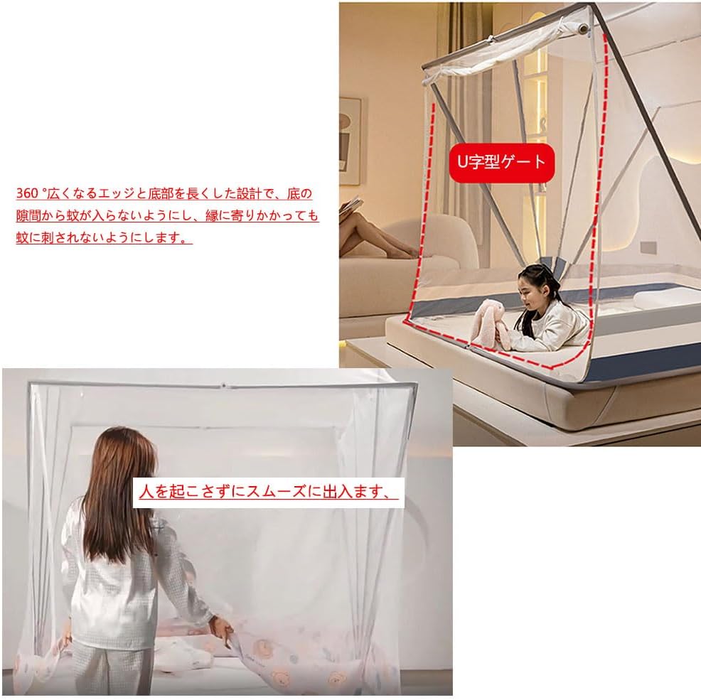 安心して眠れ 蚊帳を購入子供 安眠 設置 キャンプ ワンタッチ 刺さ 圧迫 チャック テント 寝る 布団 組み立て ファスナー ベッド 天井 虫除け 蚊帳 蚊帳 テント ワンタッチ