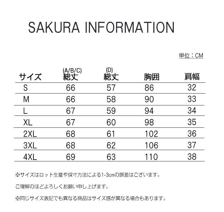 商品情報素材 ポリエステル100%裏地 なしポケット あり生地の伸縮性 なし生地の透け感 ホワイトはすこし透けますカラー A黒、A白、B赤、B白、C黒、C白、D黒、D白サイズ S/M/L/XL(LL)/2XL(3L)/3XL(4L)/4XL(5L)サイズ表にご参考まで生産国 中国包装について 環境保護の観点から、「簡易包装」を推進しております明細書について 当店ではエコロジーと個人情報流出防止のため、ご指示の無い限り明細書を発行しておりません。