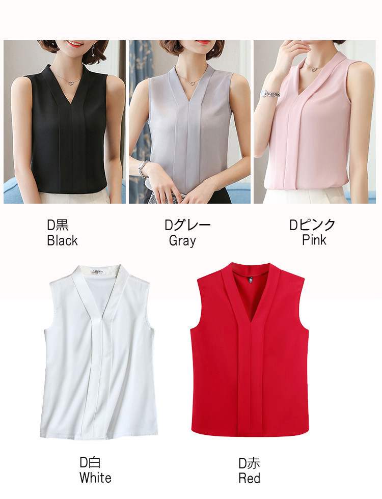 ノースリーブ ブラウス レディース シャツ トップス ノースリーブ シンプル 無地 夏物 夏物 通勤 オフィス レギュラーカラー 襟付き vネック 春 夏 選べる4タイプ