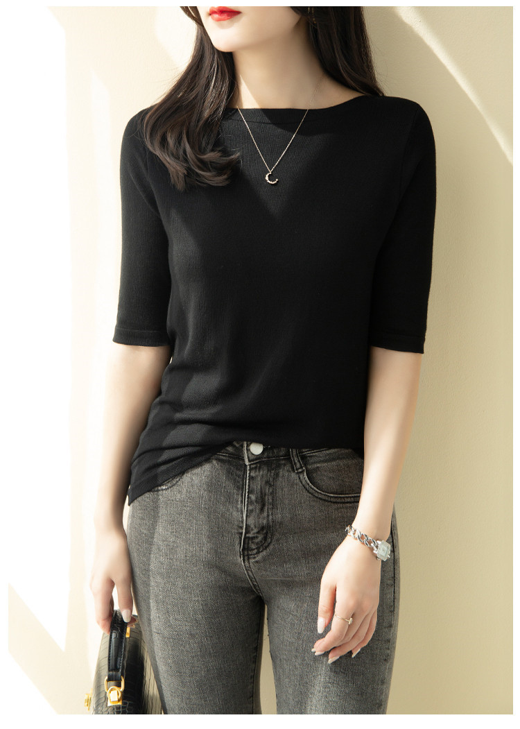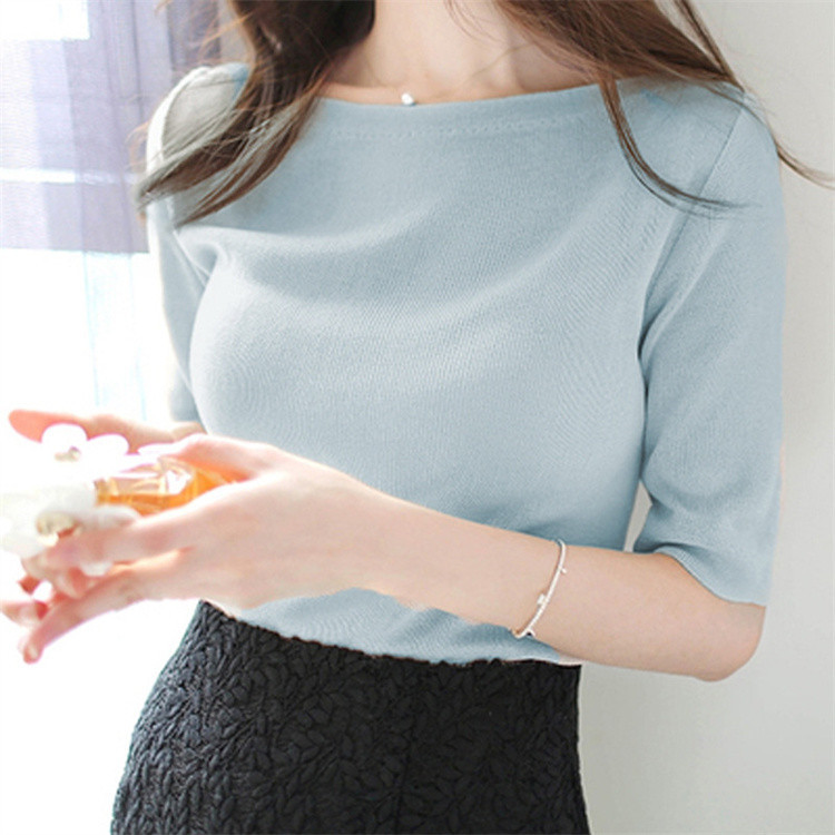 サマーニット 春 夏 五分袖 5分袖 レディース プルオーバー ボートネック ライトニット トップス カットソー ニット着痩せ 細見え オフィスカジュアル デイリー トップス ニット 接触冷感 涼しい