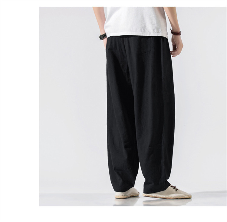パンツ メンズ ボトムス ズボン 長ズボン ワイドパンツ ワイド ロングパンツ ロング丈 膝下 ひざ下 ウエストゴム 薄手 無地 楽ちん 大きいサイズ ゆったり 夏 リネン素材 サルエルパンツ