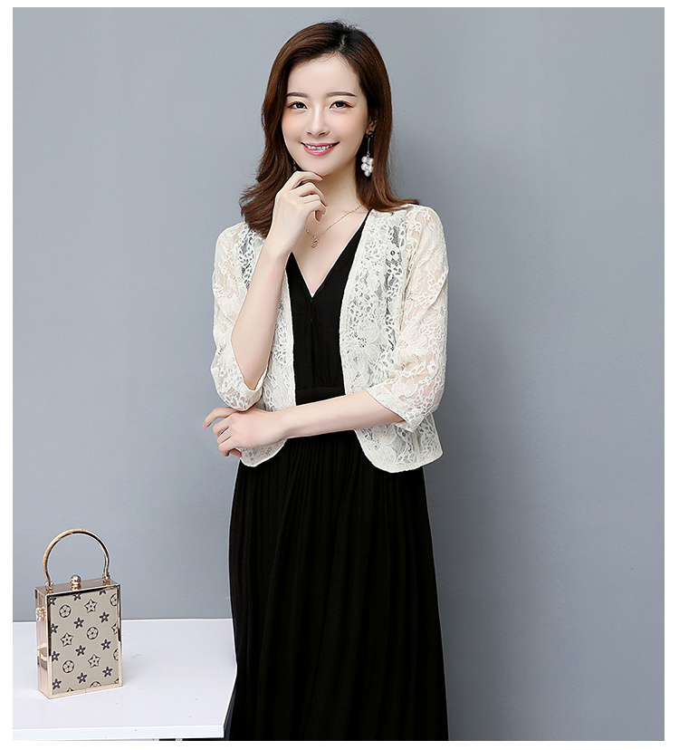 ※お取り扱い前に、商品付属タグの記載もご確認下さい。特徴※ワンピースやドレスと合わせやすいレースデザインのボレロ。フラワーモチーフのレースは、大人可愛いスタイルを叶えます。※半袖/七分袖/長袖3丈が選べる、気になる二の腕もさりげなくカバー。レースの透け感がきれいめシルエットを演出します。※総レースのフェミニンでエレガントな大人可愛いパーティーボレロです。※使わない時は折り畳んでコンパクトに収納できるのも魅力です。※結婚式や二次会、パーティー、発表会、普段のワンピースの羽織りなど、あらゆる場面でマルチに活躍してくれます。平日着用でもOK!