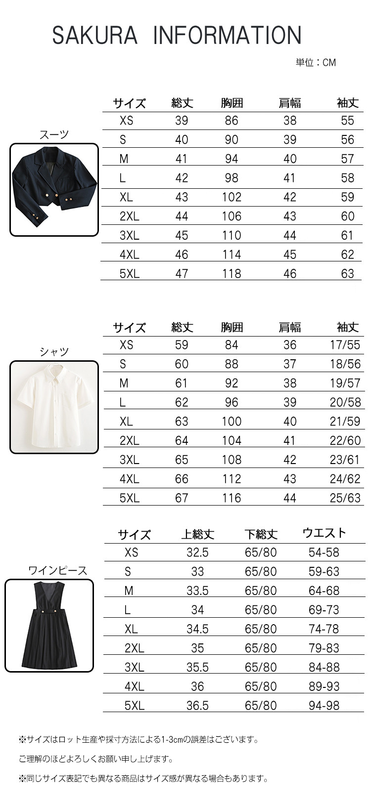 サイズ: XS S M L XL 2XL 3XL 4XL 5XL