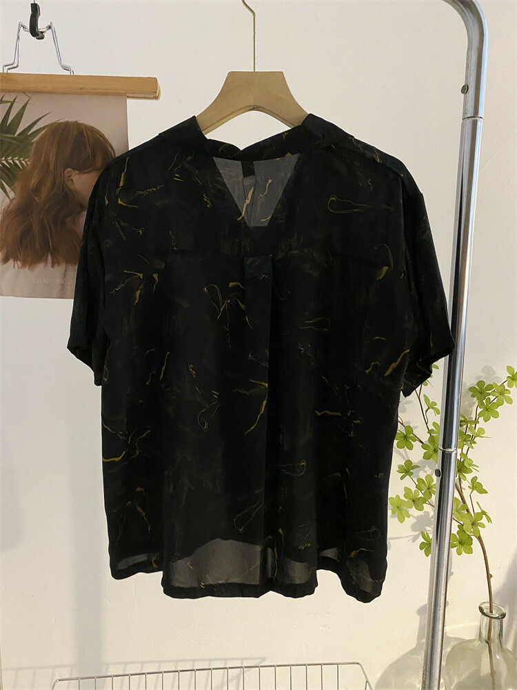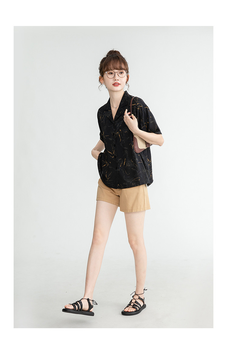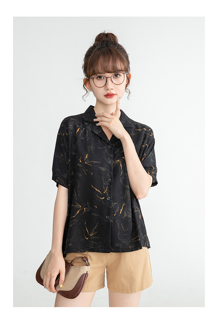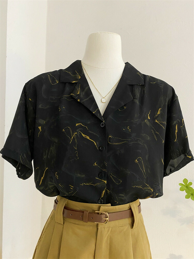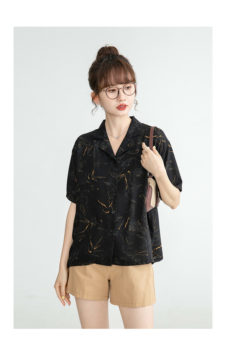 ブラウス トップス シャツ レディース 半袖 オープンカラー 羽織り アロハ 薄手 総柄 きれいめ 大きいサイズ ゆったり 春 夏 柄ブラウス