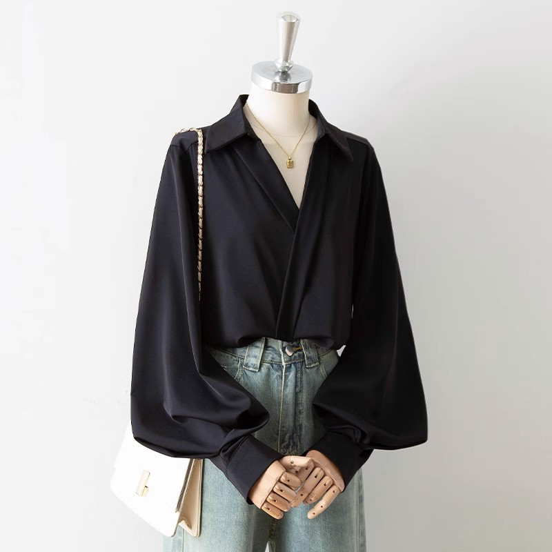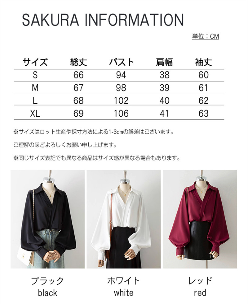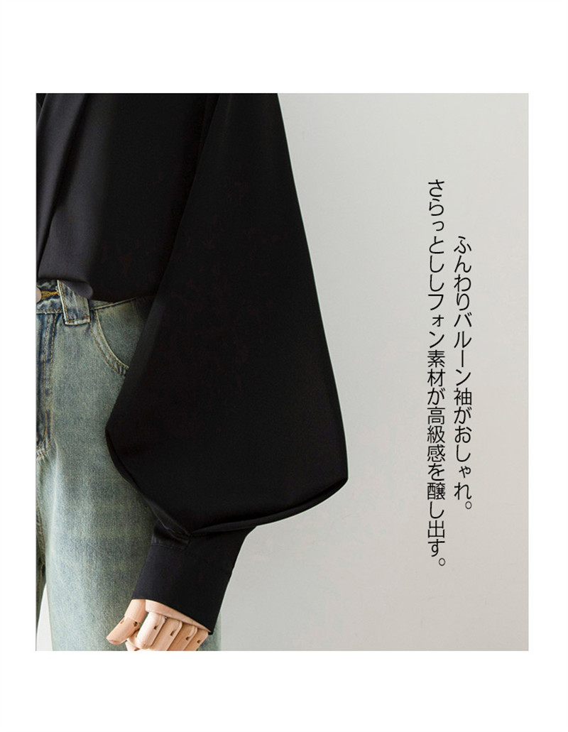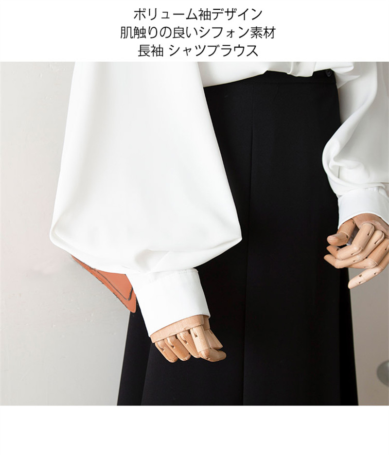 ボリューム袖 ブラウス プルオーバー Vネック レディース 長袖 襟 バルーン袖 パフスリーブ オフィス OL フォーマル ゆったり きれいめ 上品 おしゃれ 無地 シフォン 大人 トップス 春秋 ス