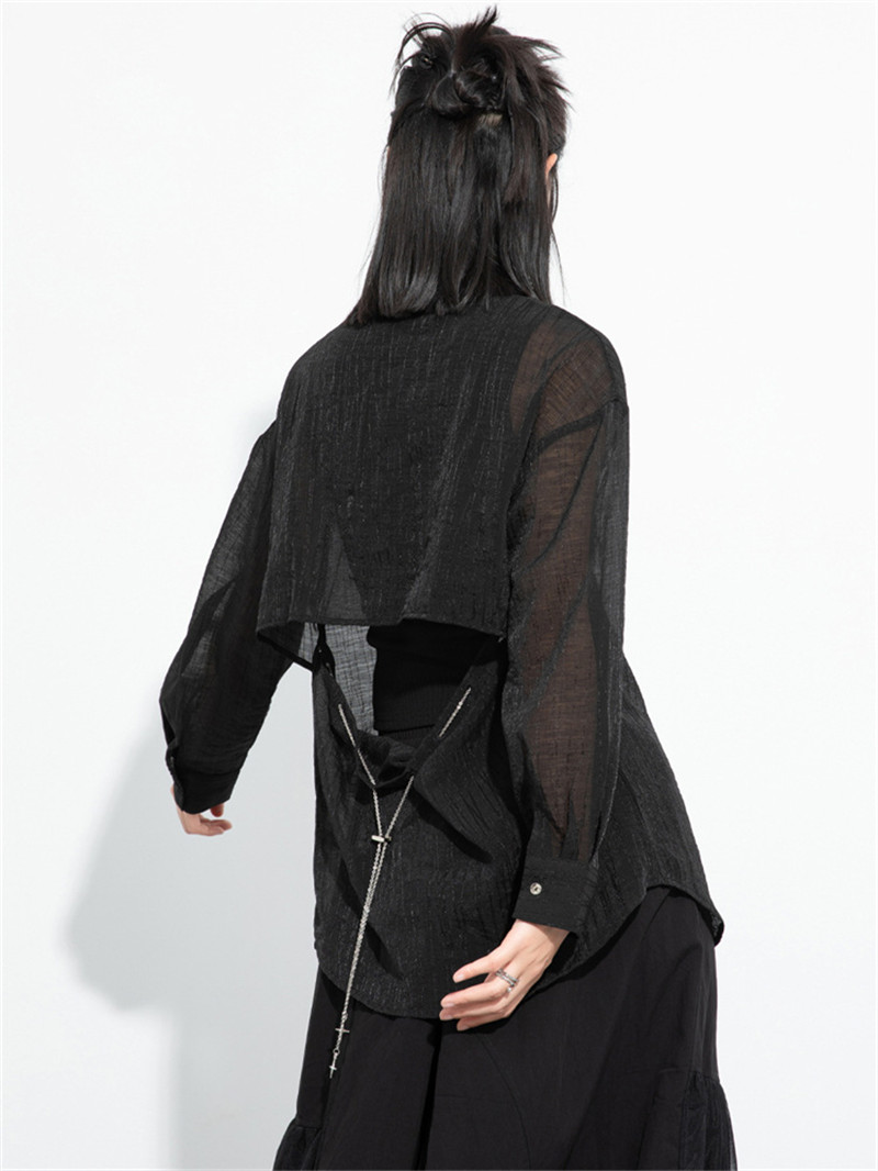 シアースリーブ ドッキングシャツ ボウタイシャツブラウス