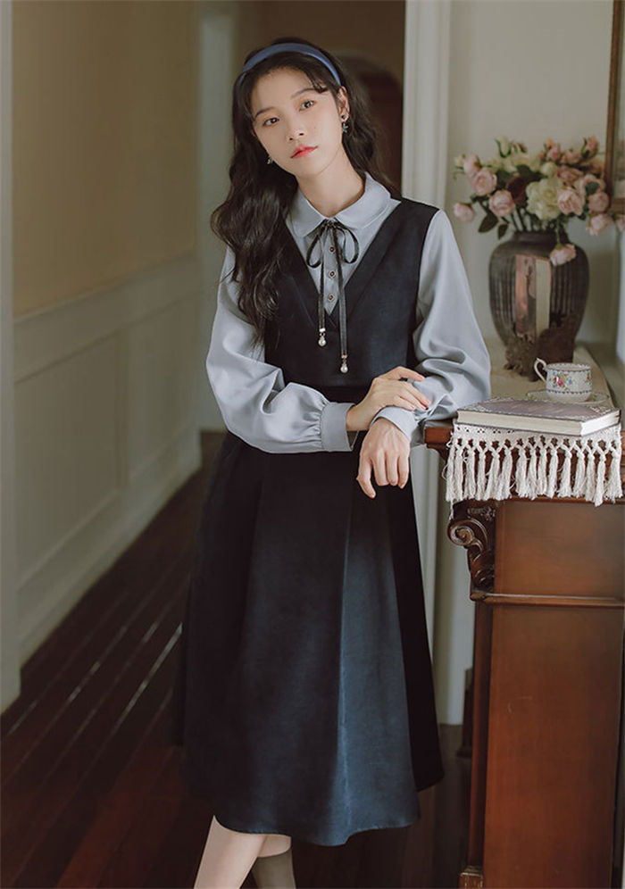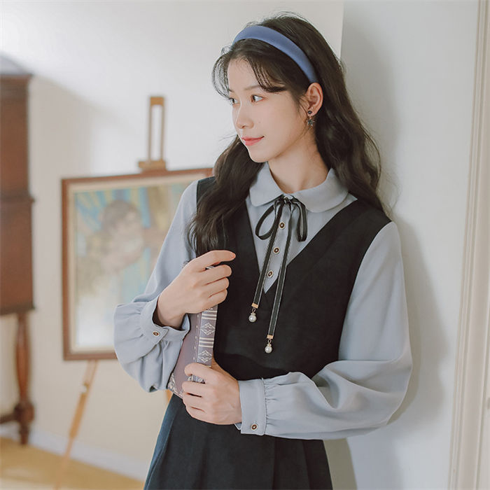 シアースリーブ ドッキングシャツ ボウタイシャツブラウス
