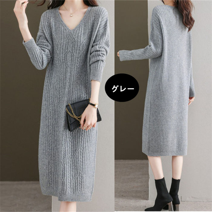 ニットワンピース 秋 冬 春 レディー
