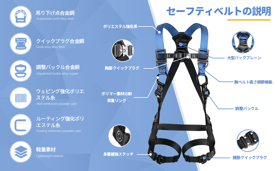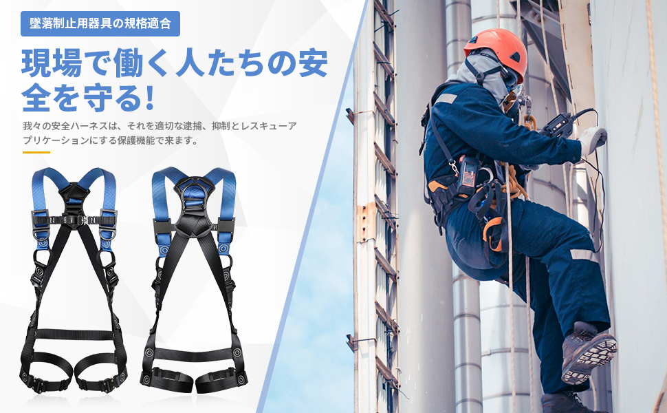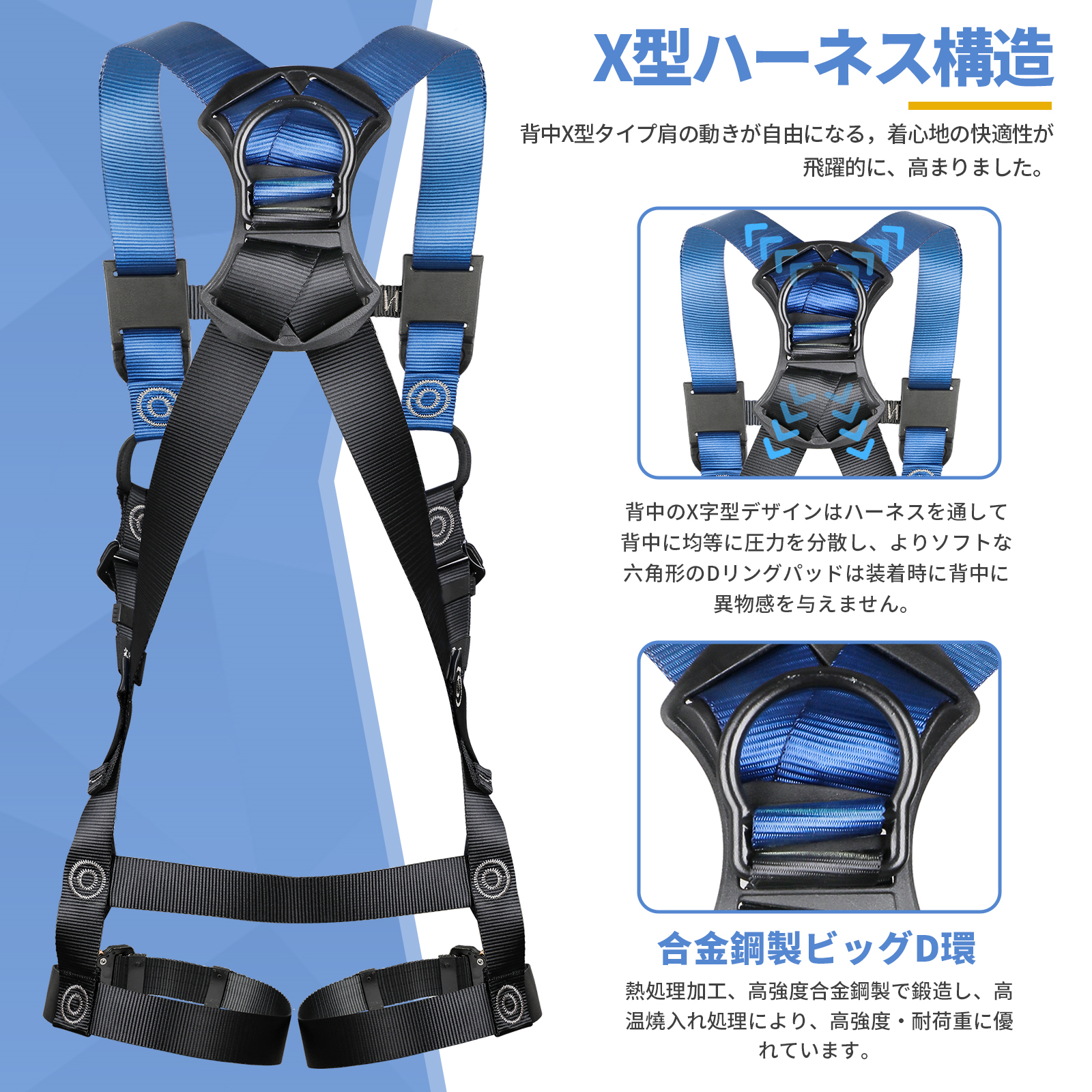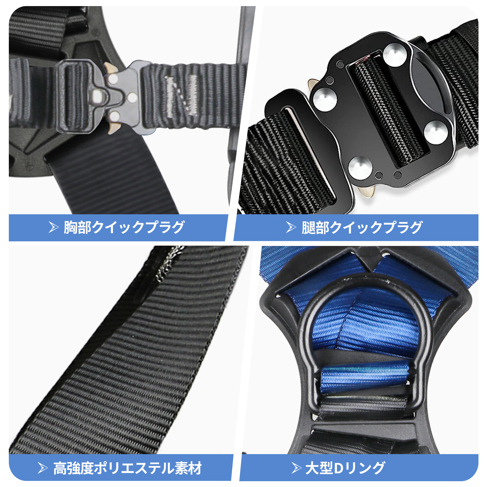 【ご注意】フルハーネス安全帯 新規格 セット、高所作業やクライミングなどは非常に危険ですので、自己の行動と判断に責任を持ち、適切なトレーニング(技術および安全対策知識)を事前に習得してからご使用ください。使用方法が誤っていたり、メンテナンスが不適切な場合、重大な事故につながる可能性があることにご注意ください。私たちの店では、常に高品質の製品とサービスを提供することに注力しています。商品について何かアドバイスがございましたら、ぜひメールにてお知らせください。