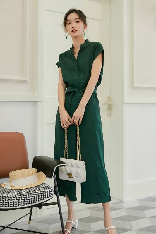 大人シルエットのワイドなジャンプスーツのセットドレス。