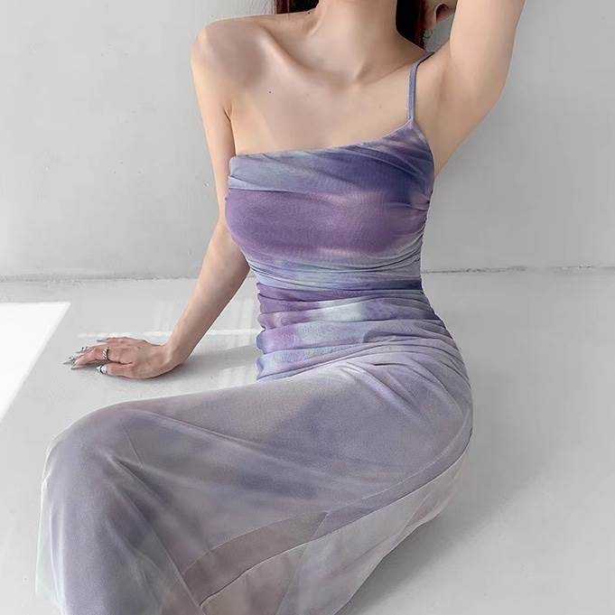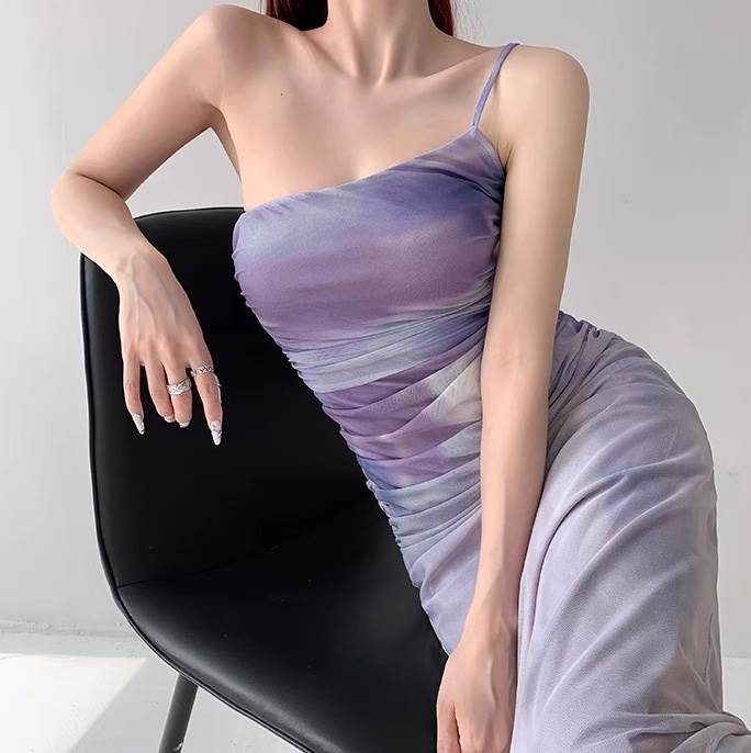ワンピース パーティー ステージ キャバ ラウンジ クラブ ロング 袖なし ノースリーブ スクエアネック ワンショル スレンダー タイト スリム カクテル カジュアル バックシャン バックコンシャス シャーリング 可愛い きれいめ シンプル カジュアル 大人可愛い おしゃれ かっこいい レトロ キュート ガーリー クール エレガント 抜け感 セクシー ナチュラル イベント リゾート 旅行 ホテル ガーデン レストラン 高原 韓国 美脚 脚長 高見え 格上げ XS S M L スリム 大人 女性 パープル