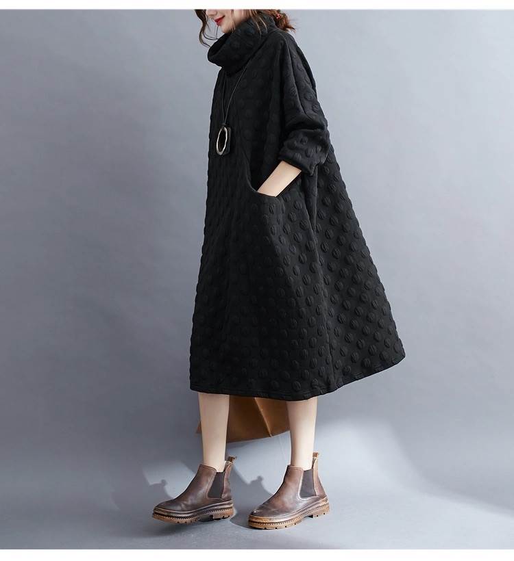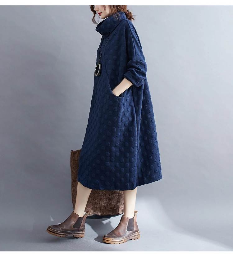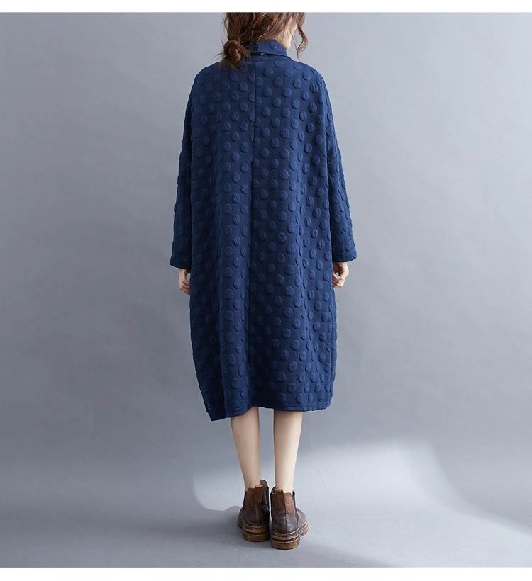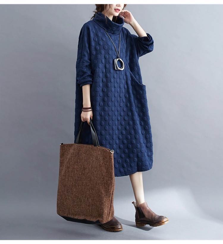 ワンピース レディース 膝丈 膝下 長袖 ハイネック タートルネック アシンメトリー オーバーサイズ フェミニン ポケット カジュアル 上品 おしゃれ レトロ こなれ感 ラフ ガーリー エレガント 抜け感 ヴィンテージ キュート カントリー ナチュラル ドット柄 水玉 秋 冬 お出かけ イベント 旅行 休日 お花見 楽ちん 体型カバー 普段使い 着回し レイヤード トレンド 流行 インスタ映え L XL 大きいサイズ ビッグ ゆったり ゆる 黒 ブラック ブルー ネイビー ベーシックカラー 大人カラー