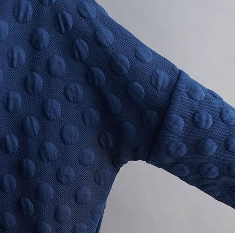 アシンメトリーなポケットがおしゃれでレトロなドット柄が、秋から冬のシーズンにぴったり。ブラック、ネイビーのベーシックカラーで、大人のカントリーやナチュラルスタイルに。