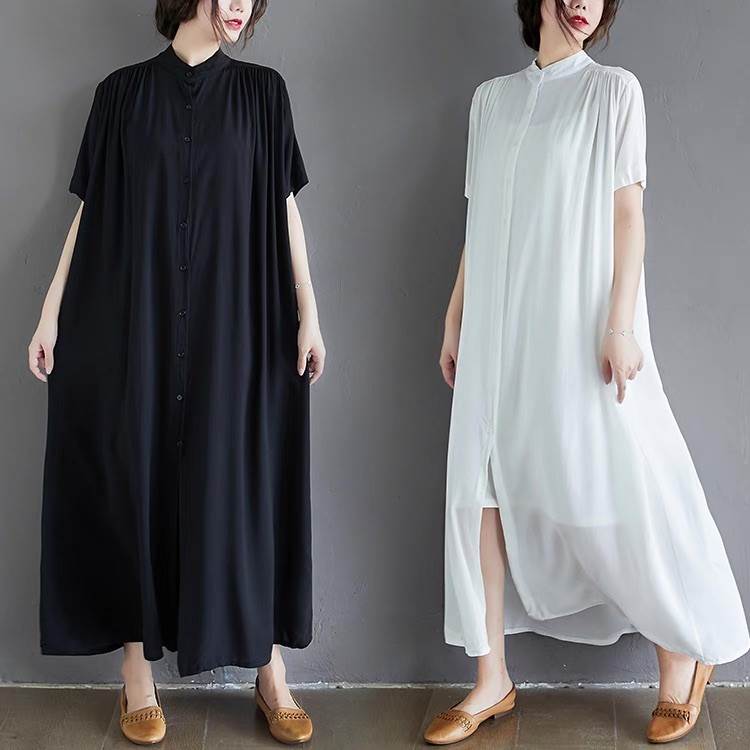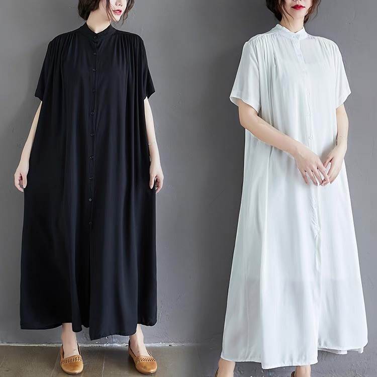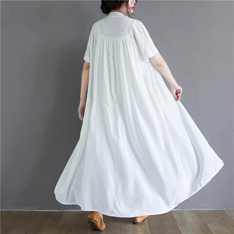 ワンピース レディース シャツワンピ フレア 前開き マキシ 半袖 スタンドカラー Aライン フェミニン ストリート かわいい 大人可愛い きれいめ シンプル カジュアル おしゃれ かっこいい レトロ ガーリー ルーズ 抜け感 ベーシック アクティブ ナチュラル 無地 夏 お出かけ リゾート 旅行 ビーチ 休日 バカンス ショッピング カフェ フェス 重ね着 楽ちん 普段使い 着回し トレンド 流行 インスタ映え 定番 ゆったり ゆる フリーサイズ 白 ホワイト 黒 ブラック モノトーン ベーシックカラー