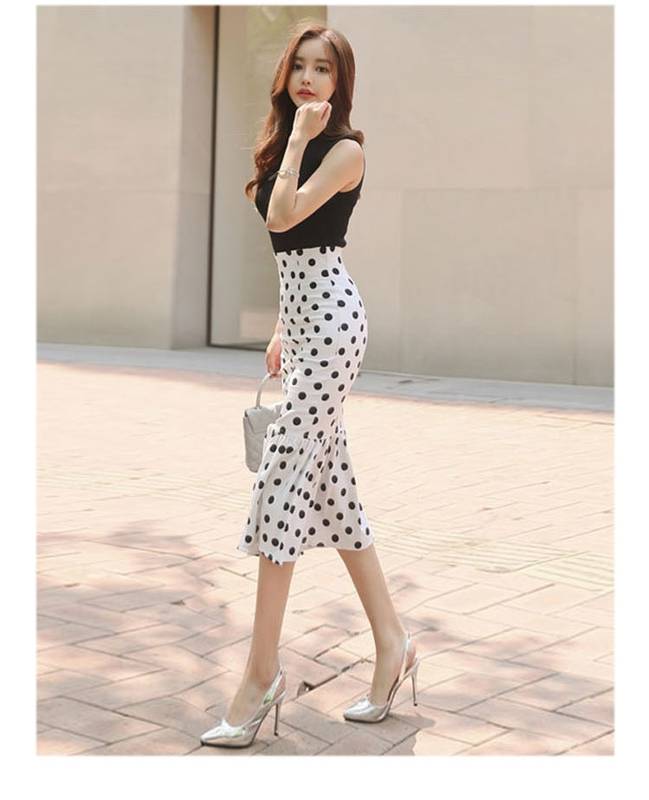 スカート レディース ドット柄 マーメイドスカート マーメイド タイト 裾フレア ボトムス ハイエスト おしゃれ タイト タイトスカート シック 大人カジュアル 大人かわいい 大人かっこいい 着まわし パーティー コーデ こなれ感 ラフ 女っぽ かっこいい クール デート ブラック 黒 ホワイト 白 10代 20代 30代 春 夏 トレンド 脚長 スタイルアップ 韓国 ファッション 存在感 体型カバー リゾート 旅行 メンズライク スタイル XS S M L XL