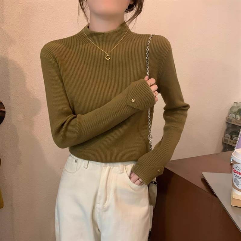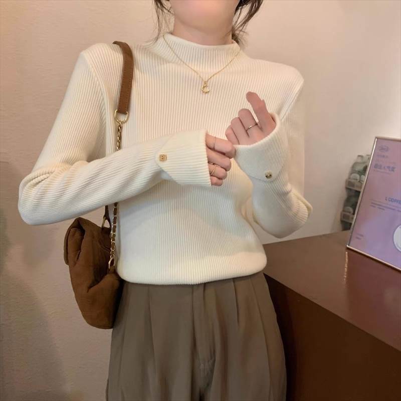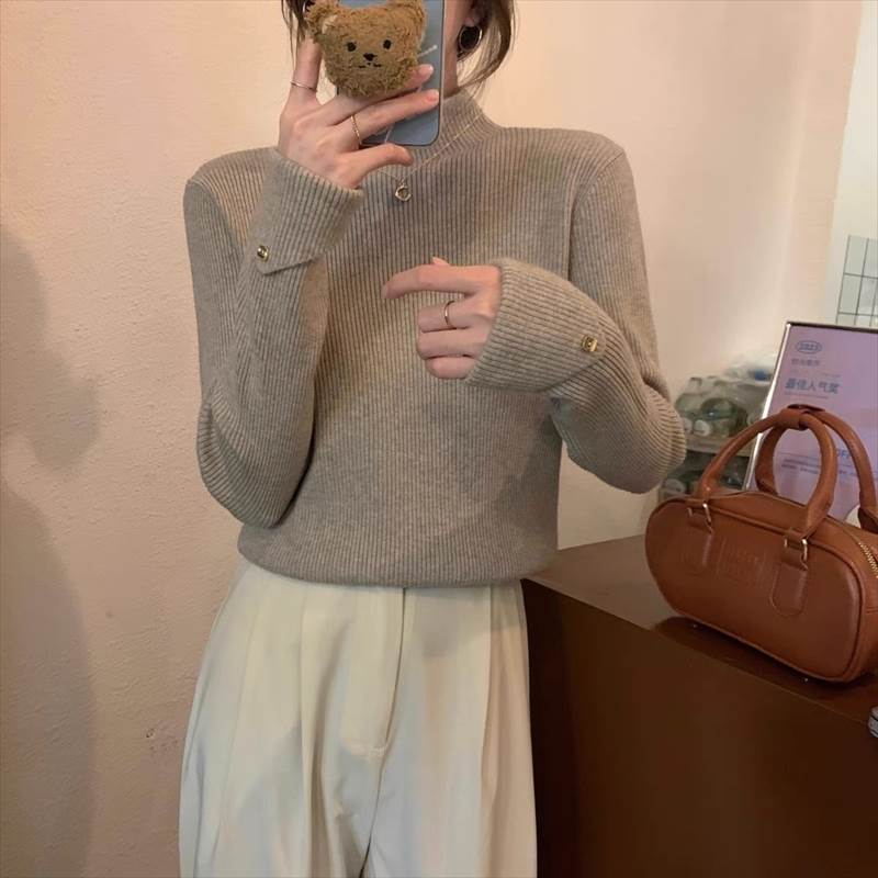 トップス ニット セーター プルオーバー レディース 長袖 ボトルネック フェミニン ボタン かわいい 大人可愛い きれいめ シンプル カジュアル おしゃれ かっこいい レトロ こなれ感 ラフ ガーリー 抜け感 キュート ベーシック アクティブ ナチュラル 無地 秋 冬 お出かけ 旅行 休日 ショッピング カフェ 重ね着 暖かい 普段使い 着回し レイヤード ロールアップ 流行 定番 S M L XL 白 ホワイト 黒 ブラック 茶色 ブラウン グレー 緑 グリーン ベーシックカラー 大人カラー 秋カラー
