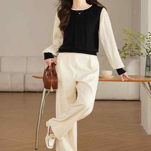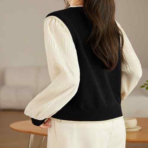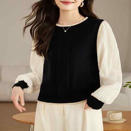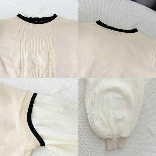 シフォン袖 切り替えニットトップス パ