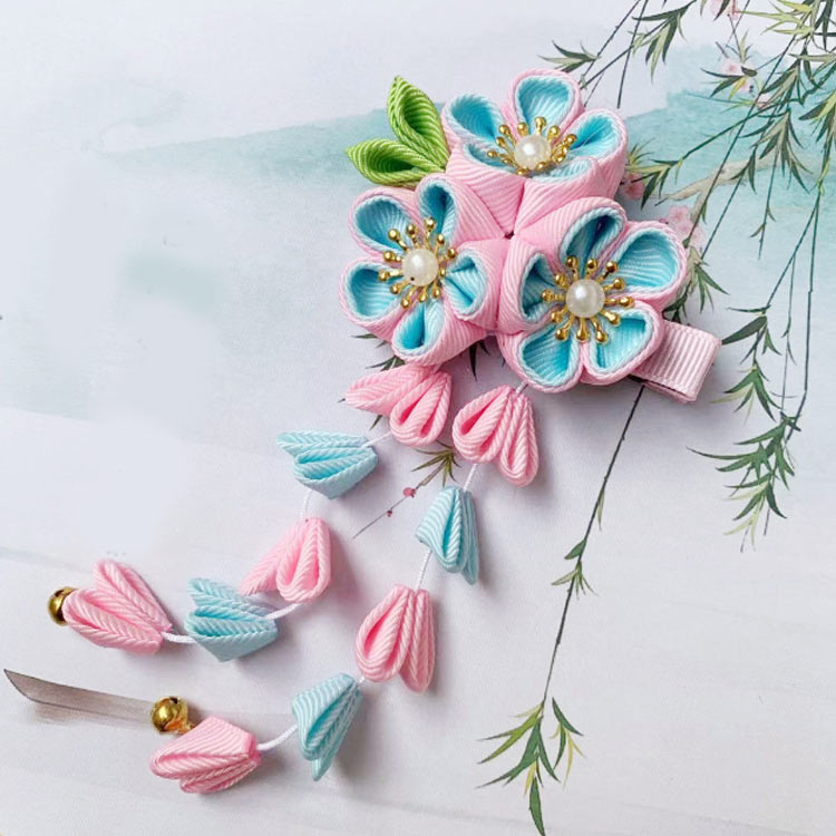 選べる2個セット ぶら下がり付き つまみ細工 ヘアアクセ 髪飾り かんざし 着物 浴衣 夏祭り 七五三 キッズ着物 和装 和柄 鈴 ゆらゆら揺れる