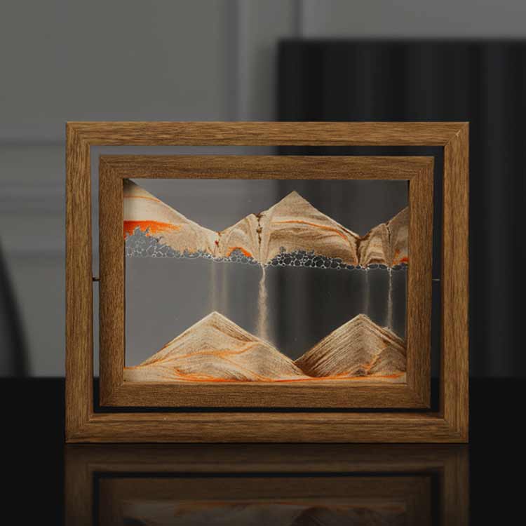 25.5×20.5cm 回転できる サンドアートピクチャー 長方形 ウッド サンド ピクチャー インテリア 砂絵 店 装飾品 砂のアート 流れる砂絵 素敵 ユニーク デスクトップ 飾り
