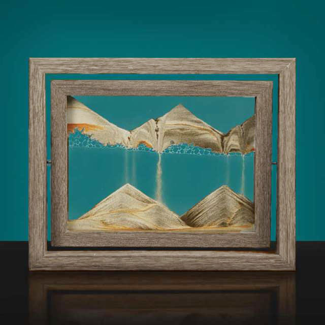 水・空気・砂が自由に動き回ることで、さまざまな風景を作り、プレッシャーを解放し、想像力を育むことができます。 フリップするたびに、砂はゆっくりと底に落ち始め、山、砂漠、海、そしてあなたがそれについて考えるものは何でも形成します。