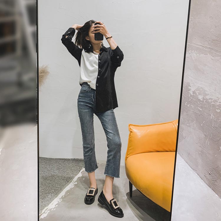デニムパンツ ビジュー付き