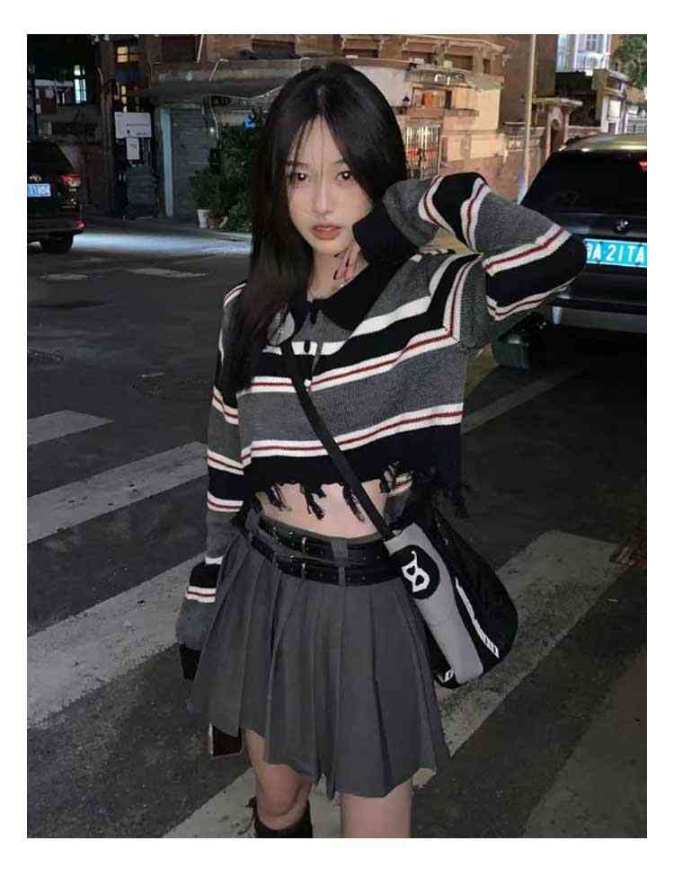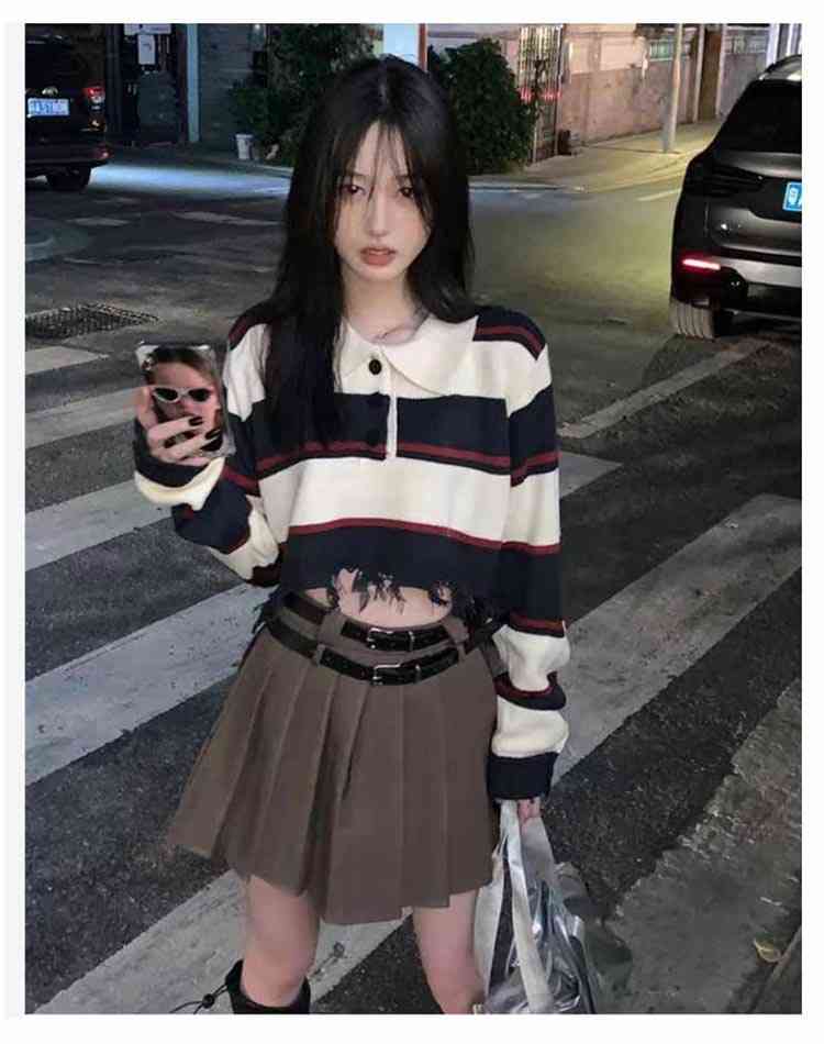 クロップド ニットトップス 長袖 レデ