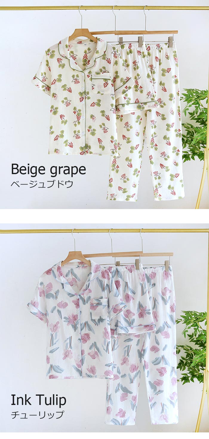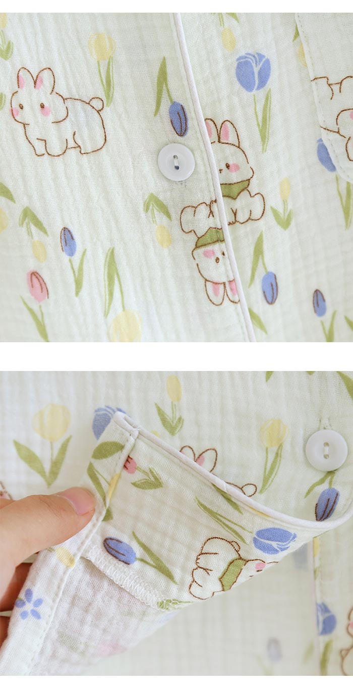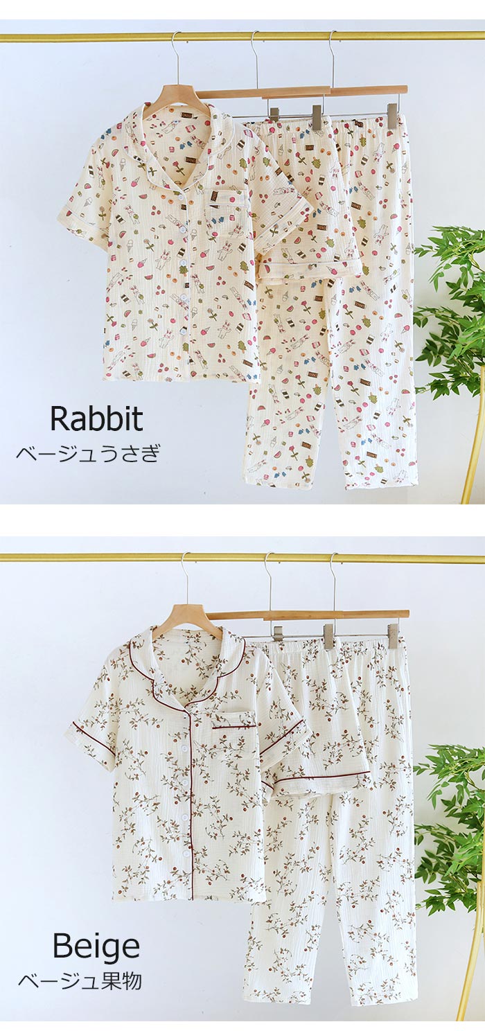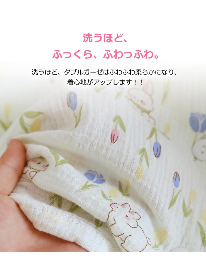 綿長袖長ズボン可愛い前開きダブルガーゼ