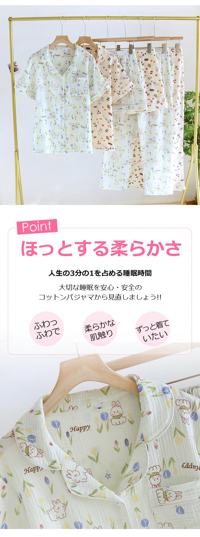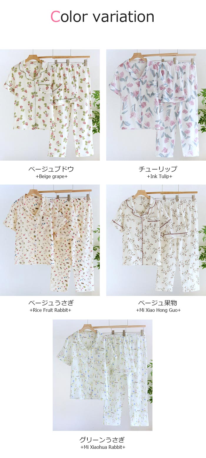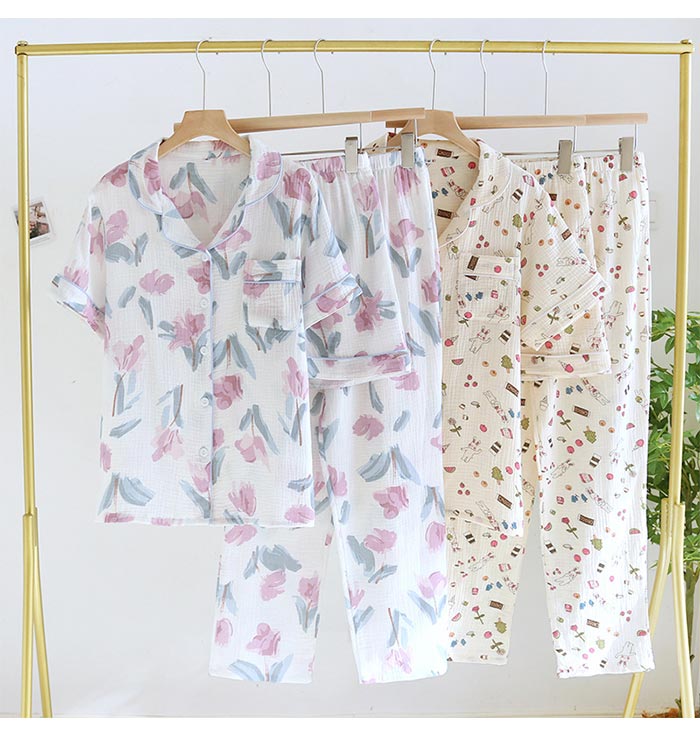 綿長袖長ズボン可愛い前開きダブルガーゼ