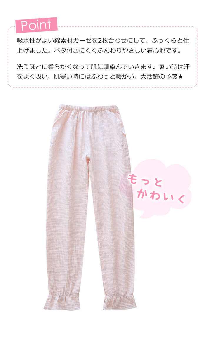 選べる4色 ダブルガーゼパジャマパンツ
