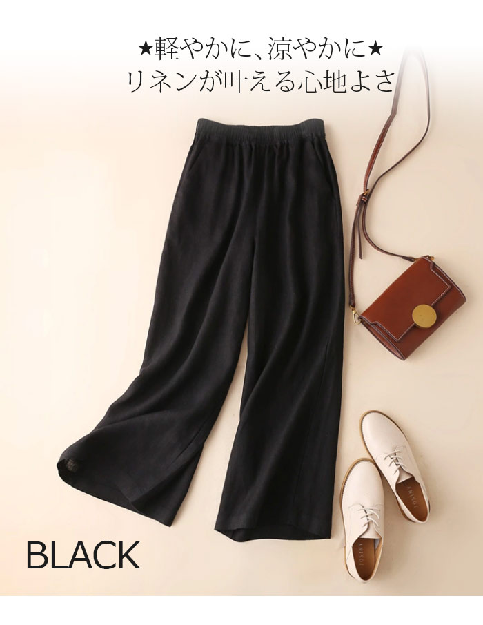 春夏女性用 フレアパンツ 9分丈 リネ