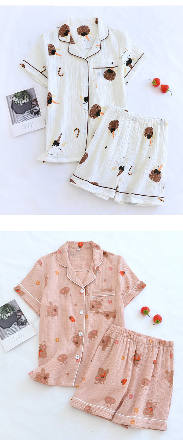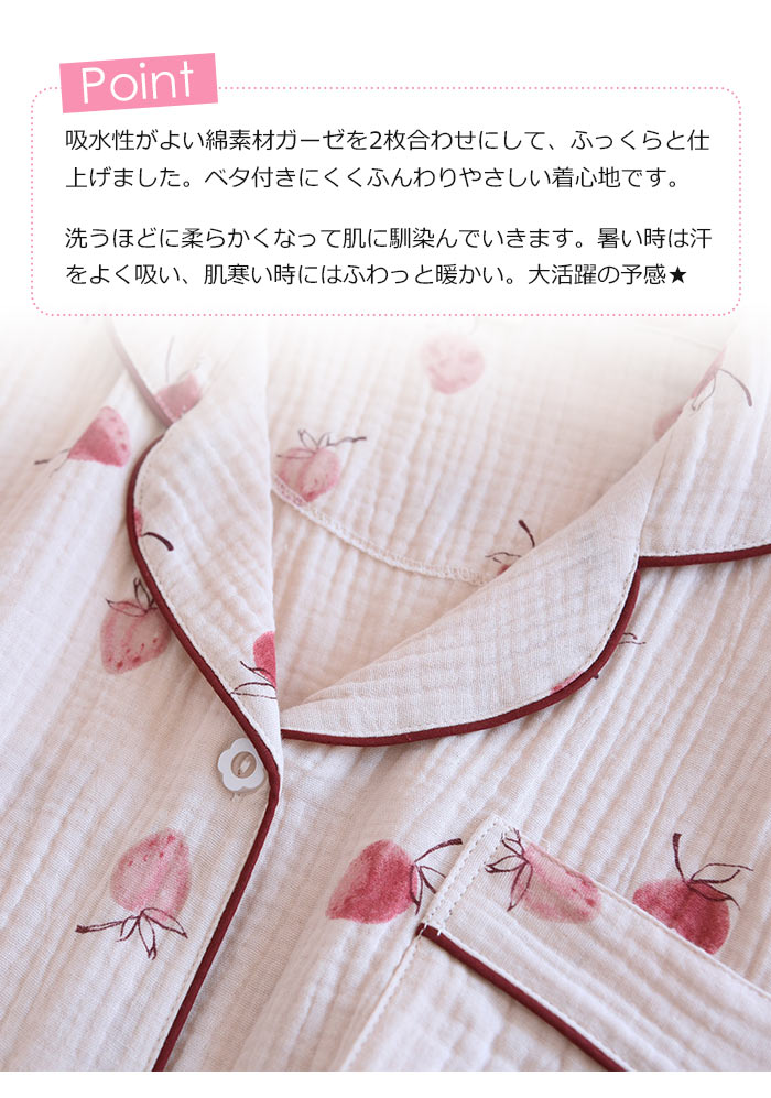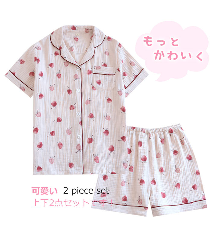 可愛いガーゼパジャマレディース半袖薄手