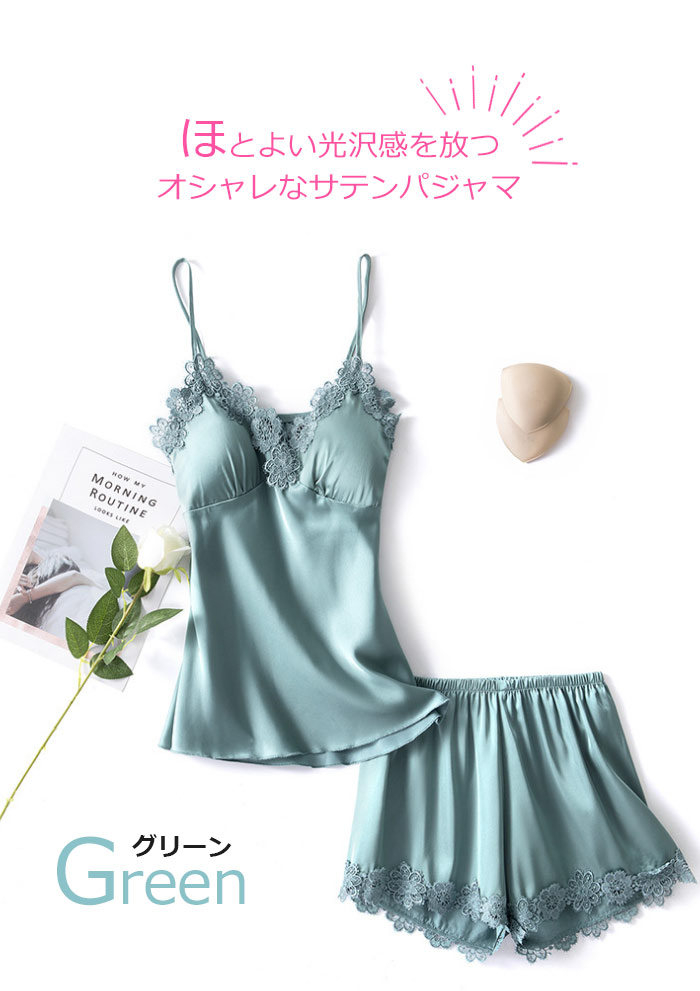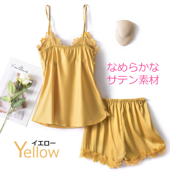 キャミソール カップ付 美盛り部屋着 セクシー ランジェリー 可愛い おしゃれ 綺麗 きれい 女性らしさ キャミソール 上下セット 韓国 合成シルク 涼しい
