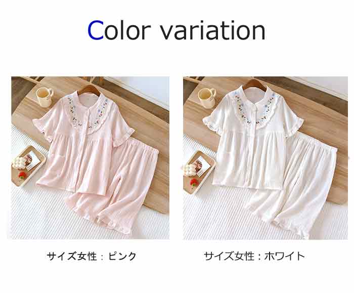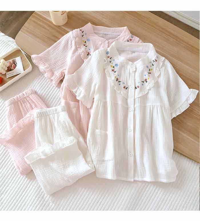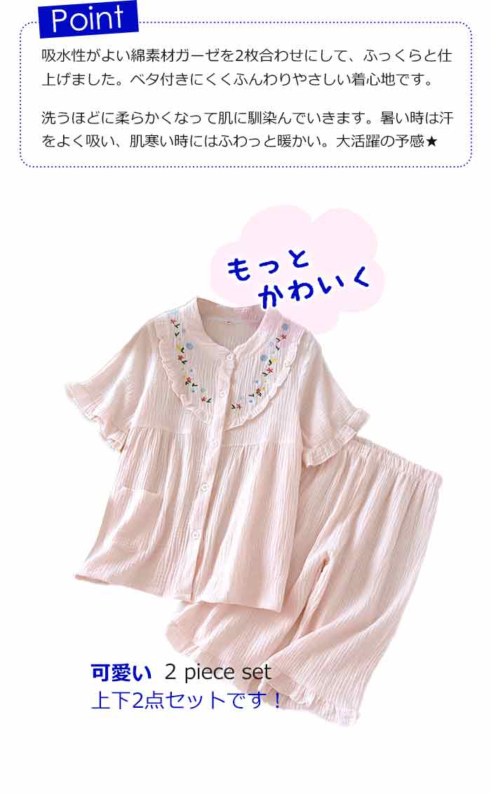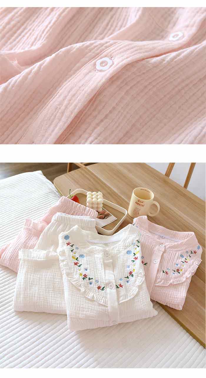 可愛いフレア襟のダブルガーゼパジャマ