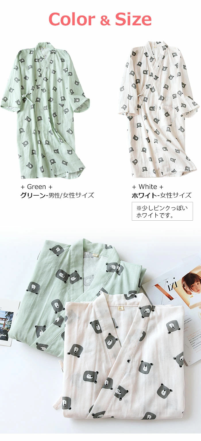 一部即納 綿100% 和風パジャマ ルームウエア ワンピース 部屋着 ペア寝巻き カップルペアルック 寝間着 インナー 前合わせ ウエア ガーゼパジャマ 入院用 介護 2重パジャマ 夏 薄手 長袖 かわいい 白/緑/M/L 敬老の日