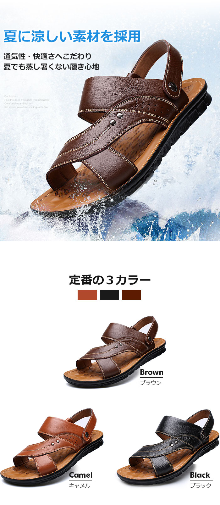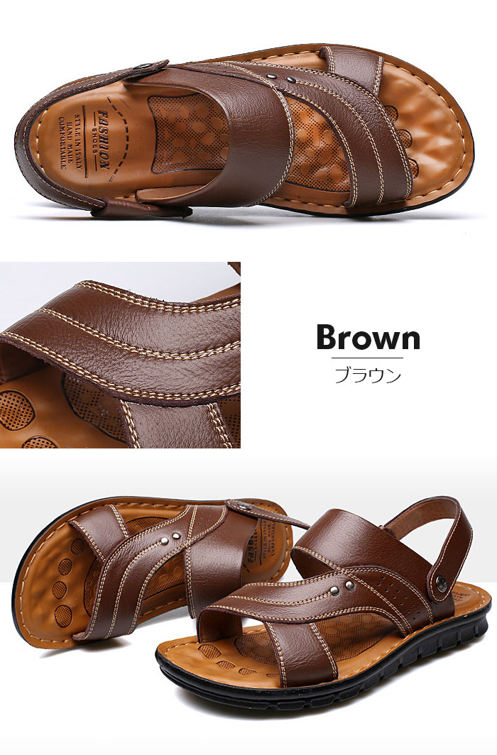 サンダル メンズ 大きいサイズ スポーツサンダル コンフォートサンダル ビーチサンダル シューズ レザー カジュアルサンダル 2way スリッパ 靴 スリッパ 韓国 革 ビジネス靴 フォーマルシューズ 夏用 ブラック キャメル ブラウン23.5-27 父の日