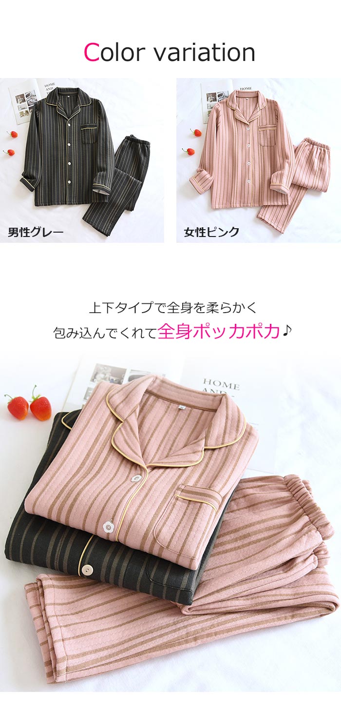 キルトパジャマvネックペアルックパジャ
