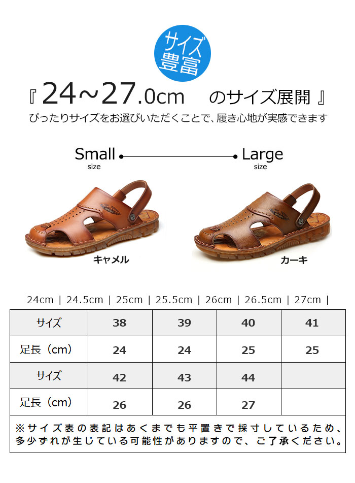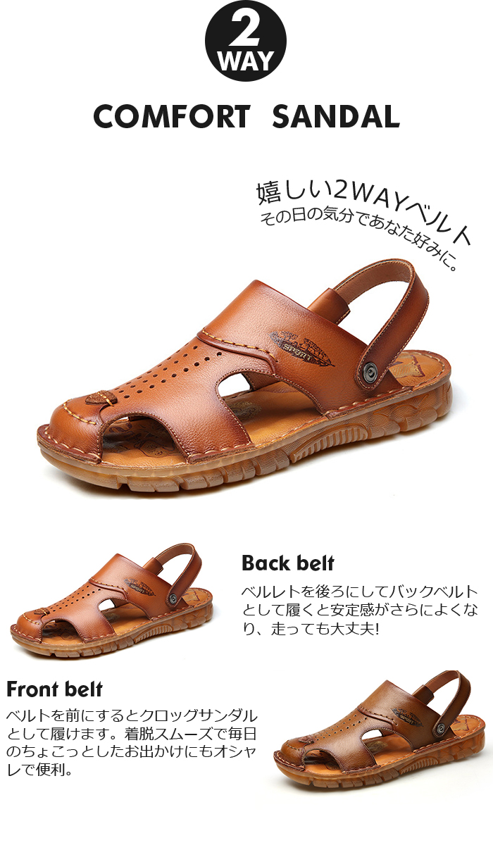 スポーツサンダル メンズ コンフォートサンダル ビーチサンダル 大きいサイズ 皮 カジュアルサンダル 2way 本革 スリッパ ビジネス靴 フォーマルシューズ 夏用 カーキ キャメル 24-27 父の日