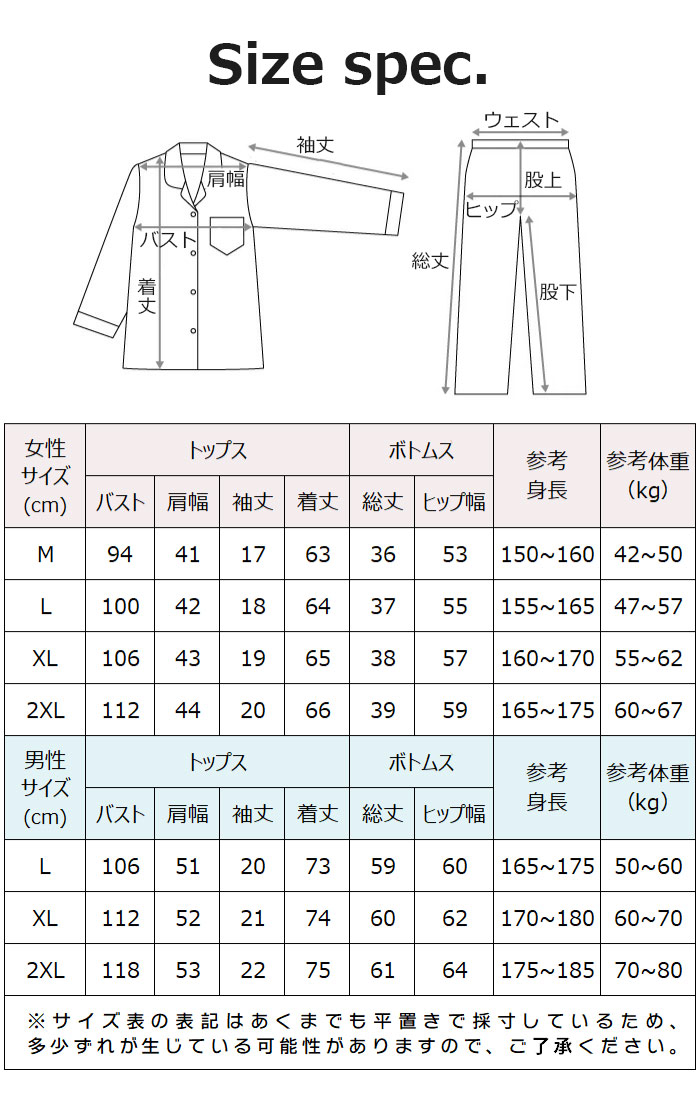 サイズ: 女性M 女性L 女性XL 女性2XL 男性L 男性XL 男性2XL