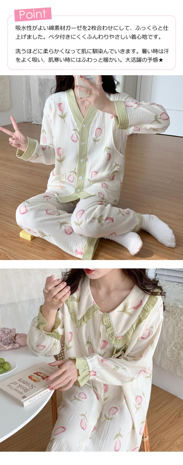 ワンピースパジャマ 可愛いセーラー襟マ