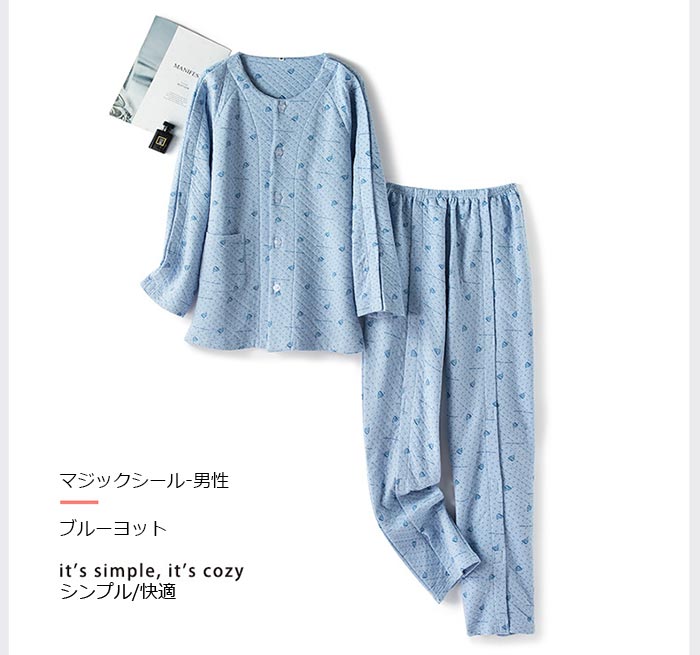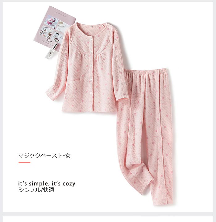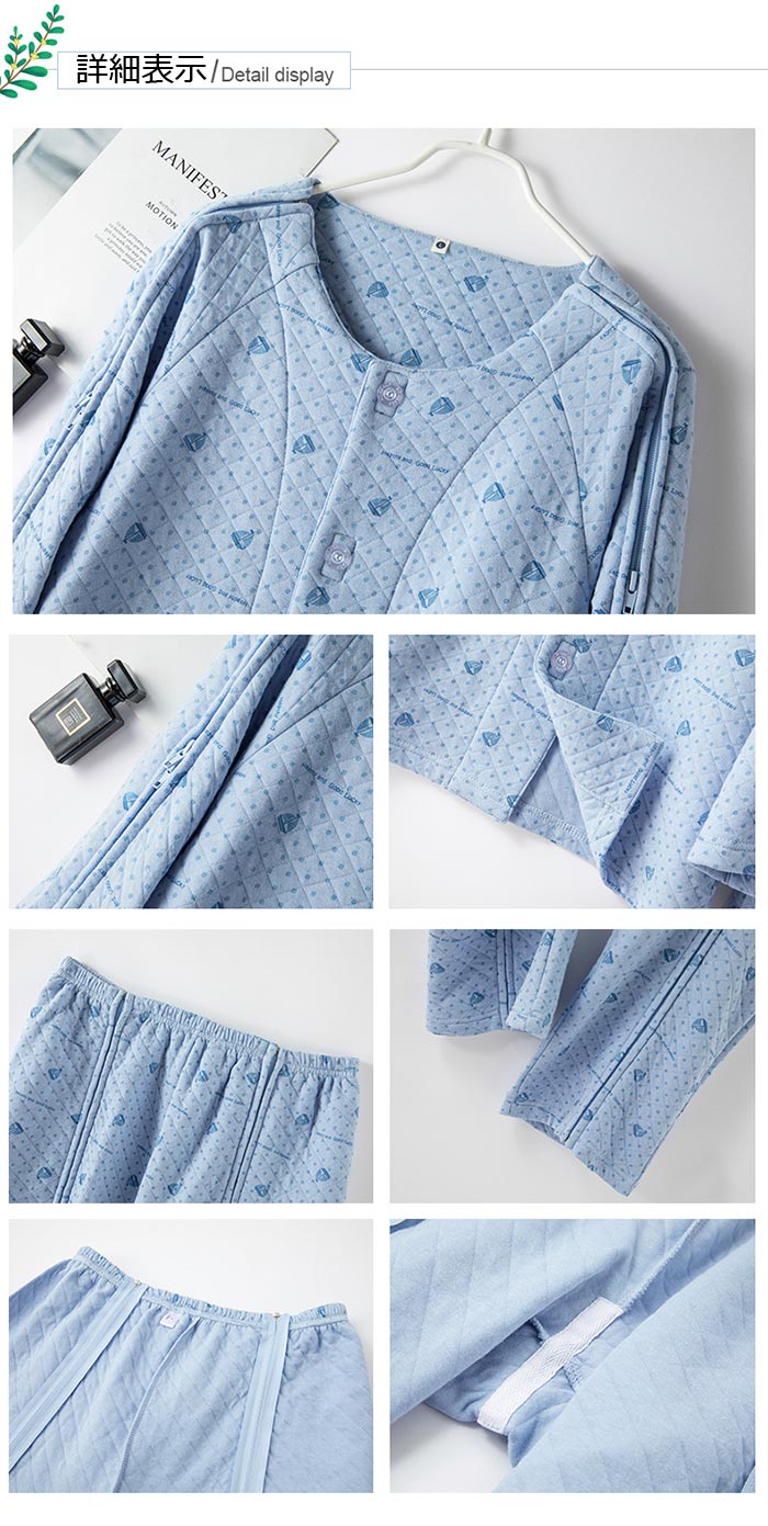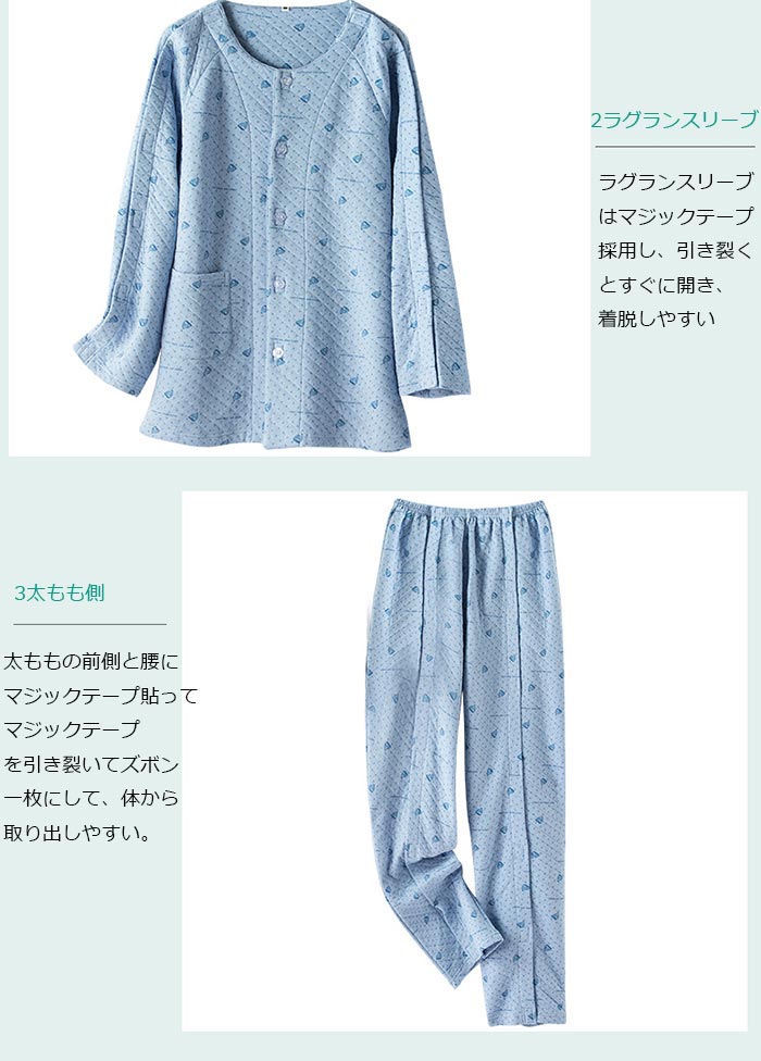 ピンク ブルー介護服 パジャマ 女性用